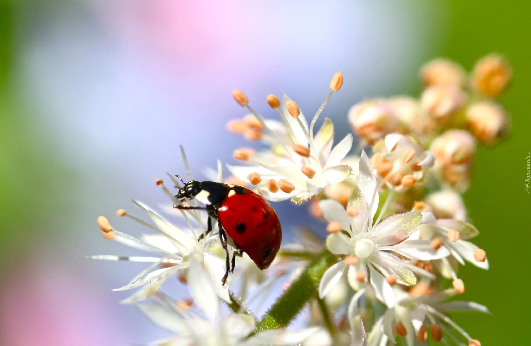 Edytor tapety: Biały, Kwiat, Wiśni, Biedronka