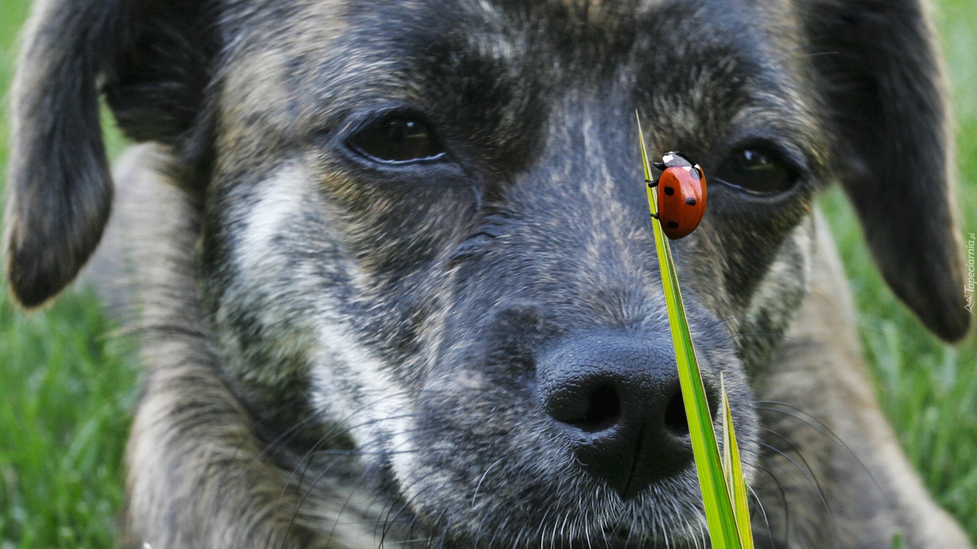 Edytor tapety: Pies, Biedronka, Trawa, Łąka