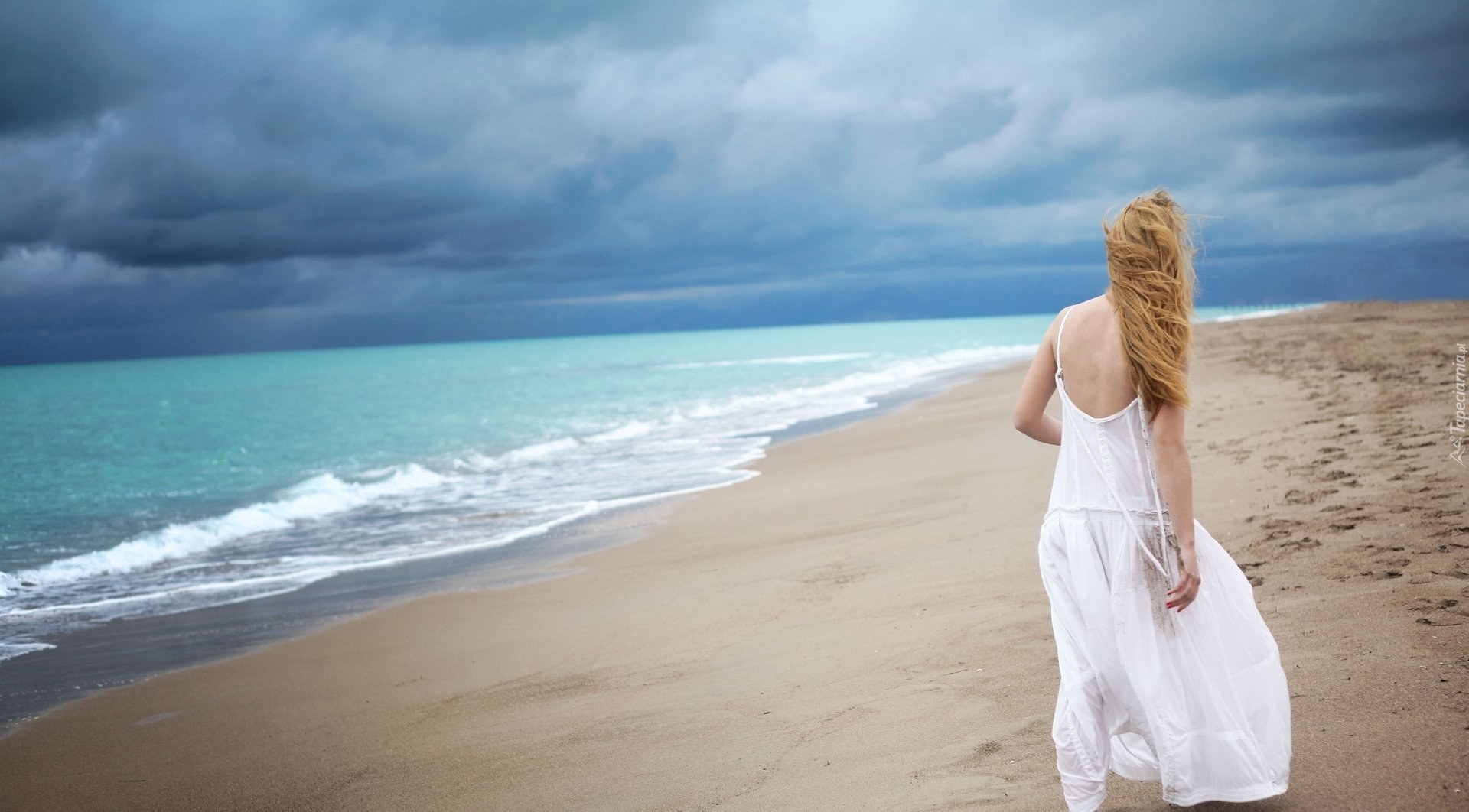 Edytor tapety: Kobieta, Morze, Plaża Chmury