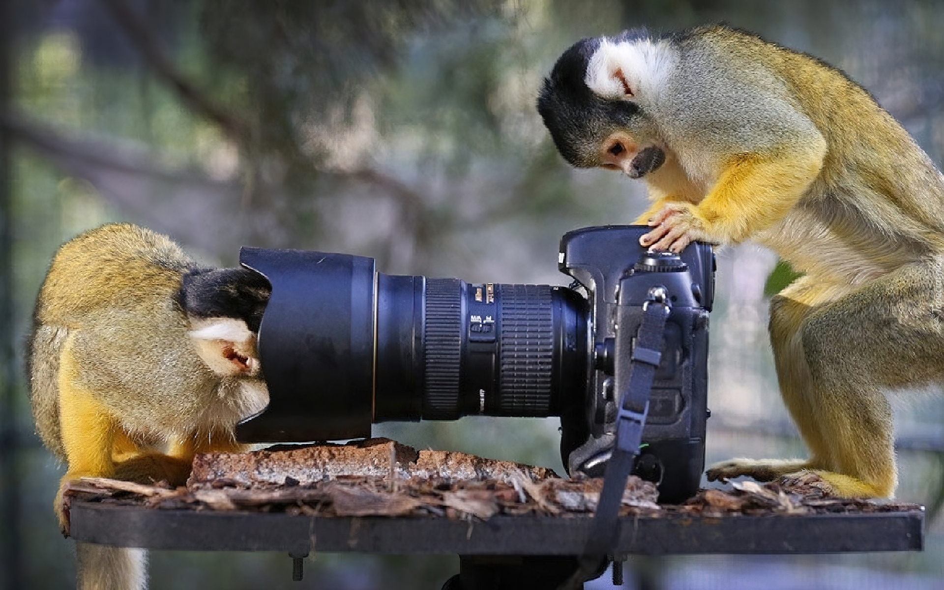Edytor tapety: Dwie, Małpki, Aparat