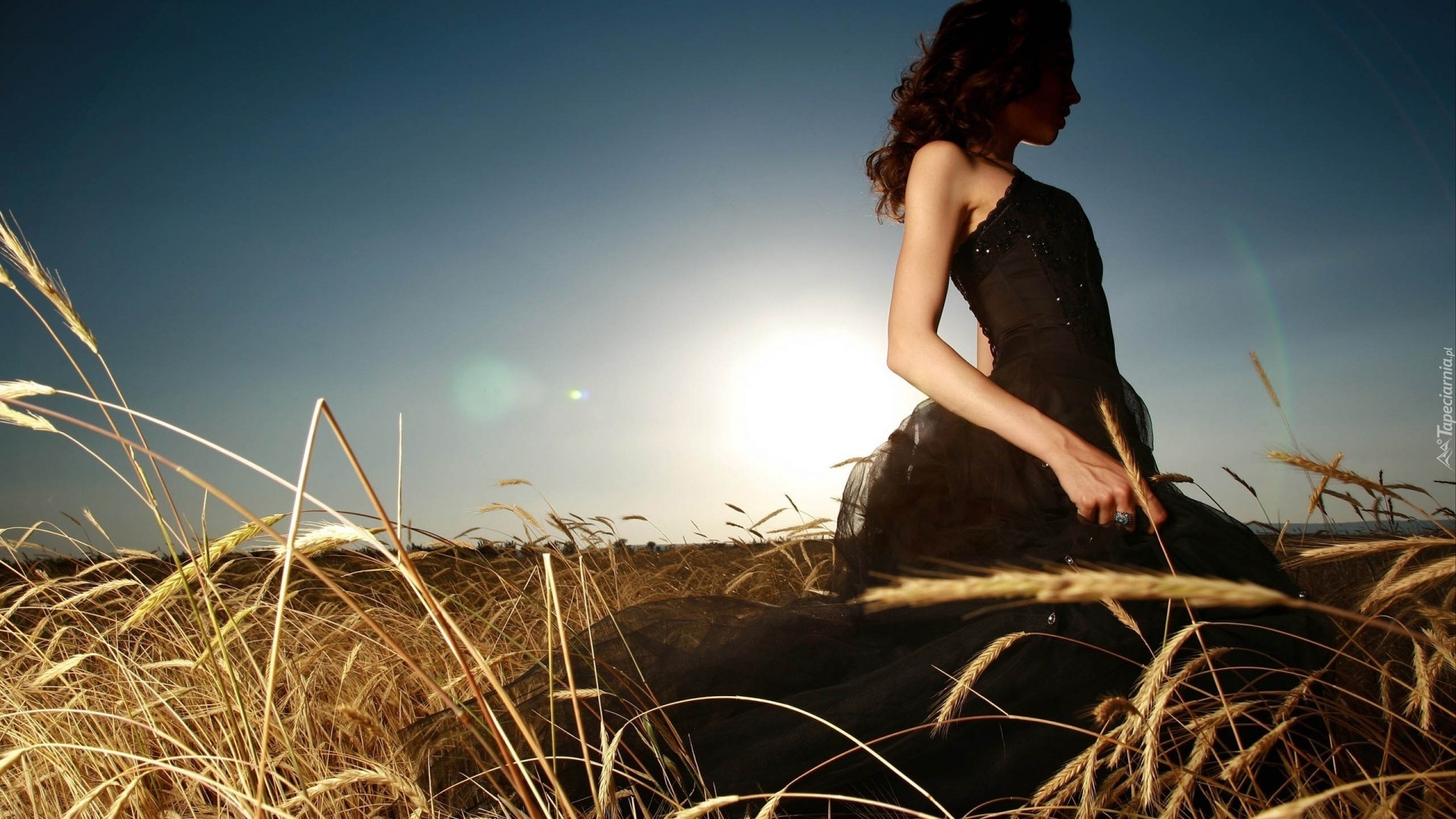 Edytor tapety: Kobieta, Czarna, Suknia, Zboże
