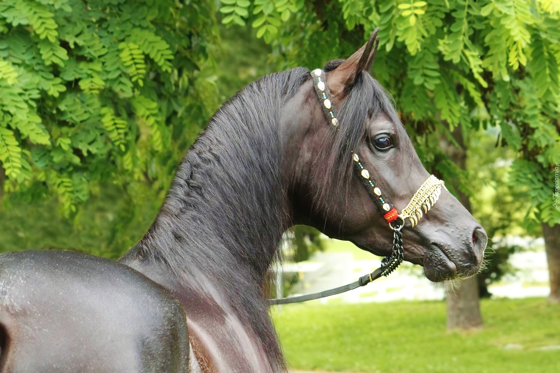 Edytor tapety: Koń, Łeb, Uzda, Zieleń