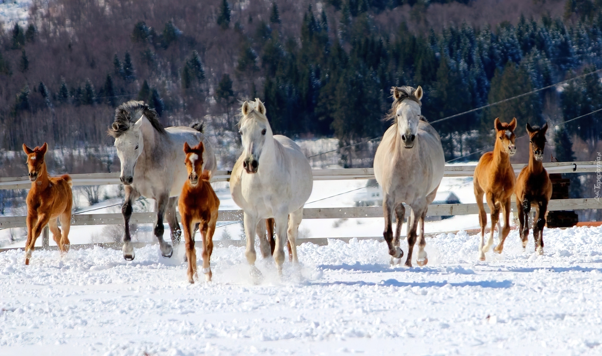 Edytor tapety: Konie, Źrebaki, Bieg, Snieg