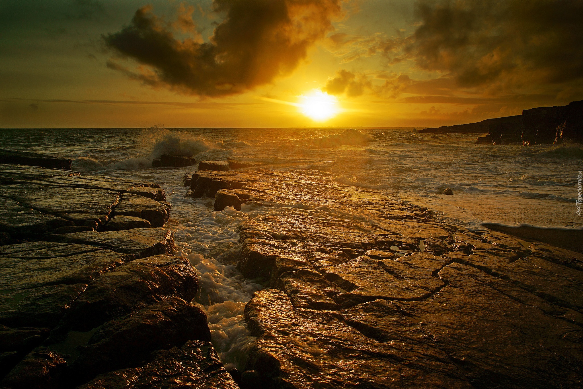 Edytor tapety: Zachód, Słońca, Morze, Skałki