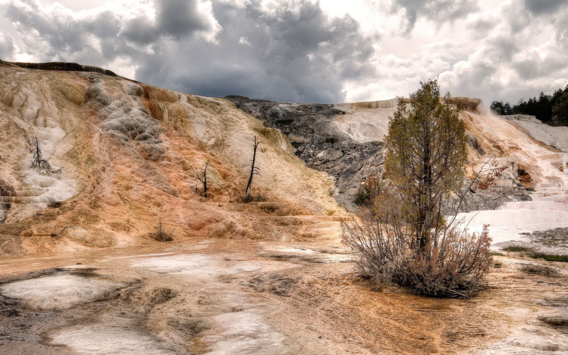 Edytor tapety: Chmury, Skały, Drzewo