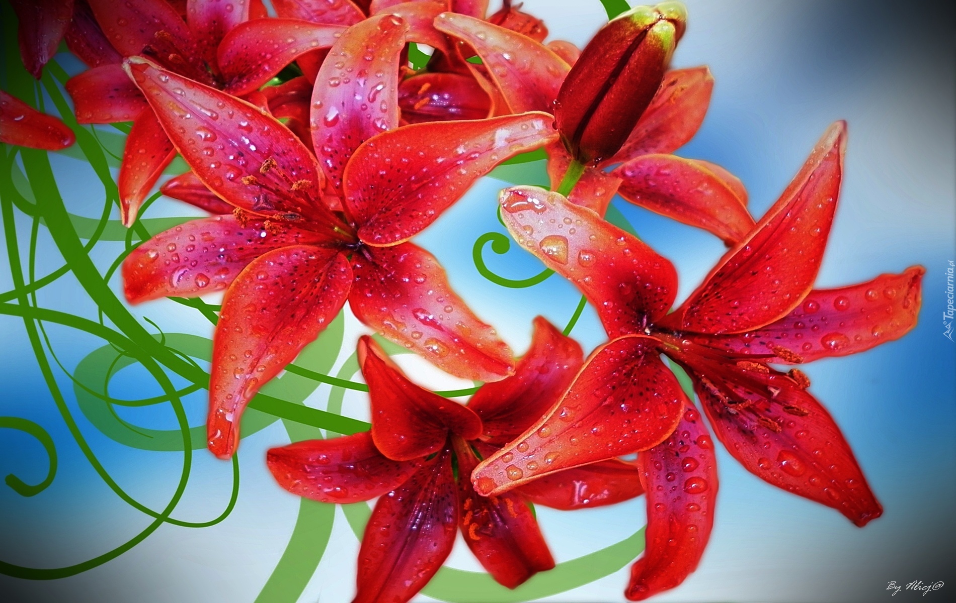 Edytor tapety: Bordowe, Lilie, Krople, Wody