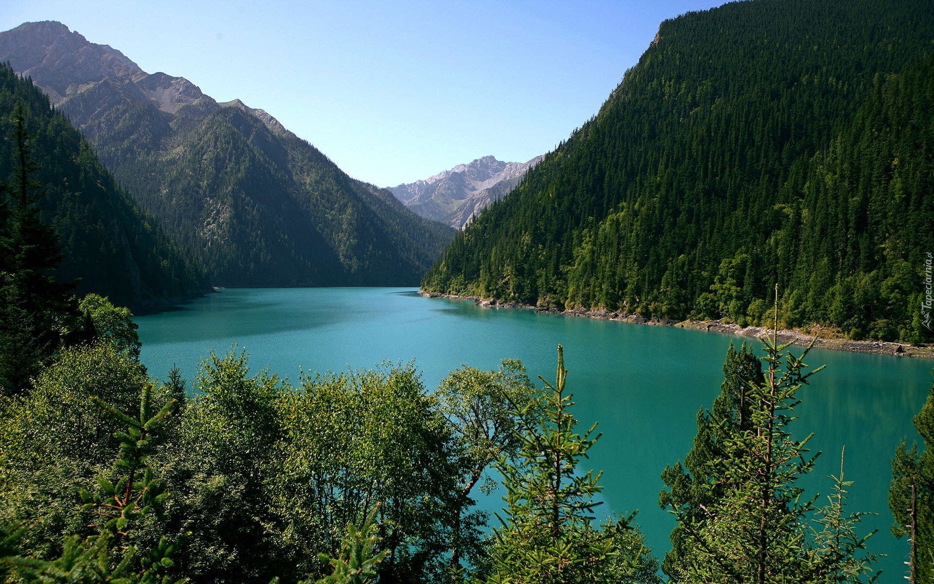Edytor tapety: Góry, Lasy, Jezioro