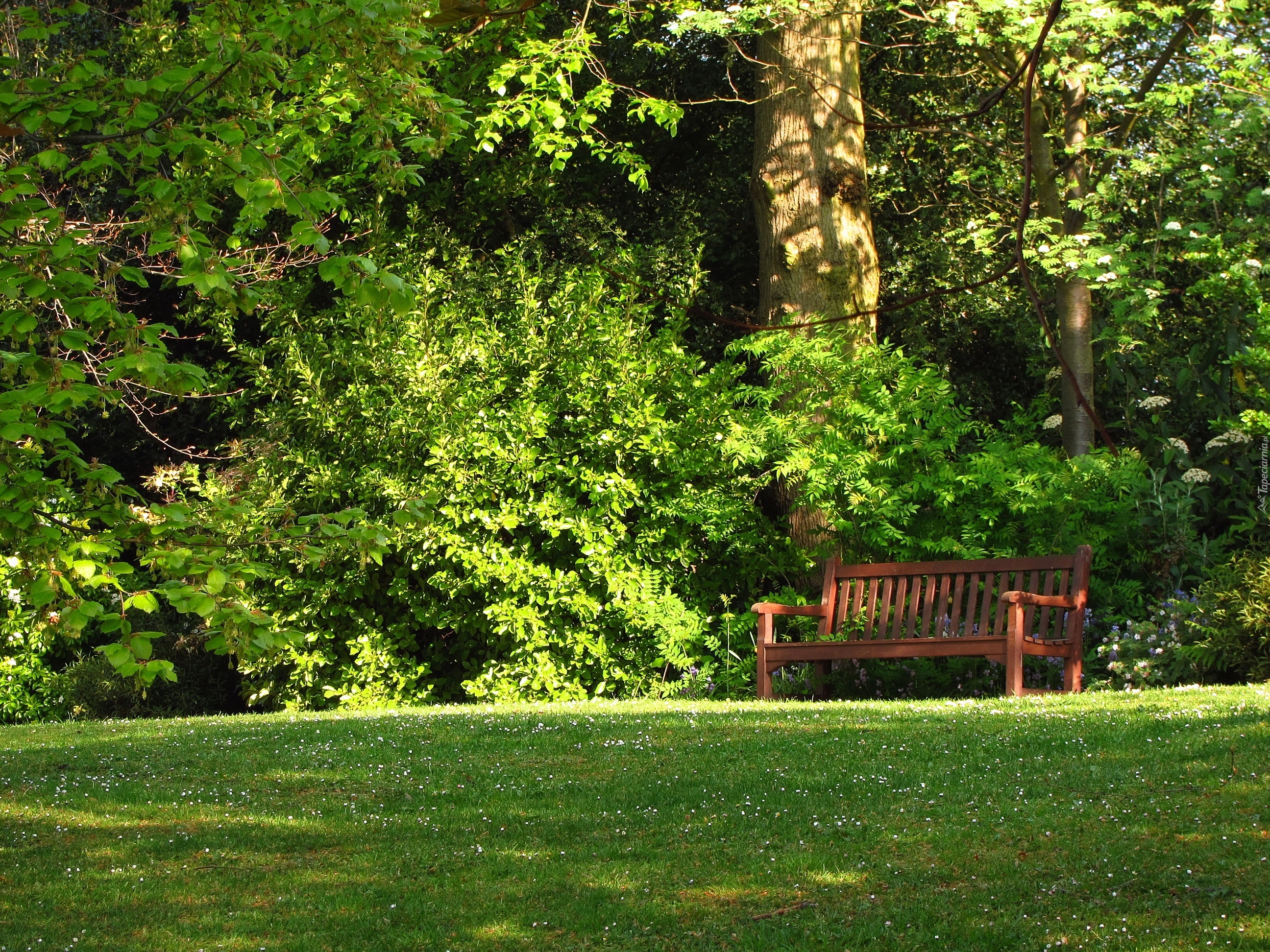 Edytor tapety: Ogród, Trawnik, Ławka