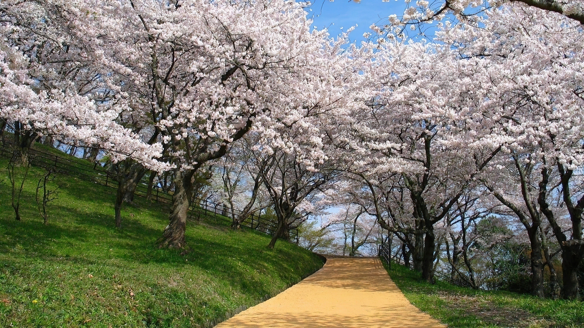 Edytor tapety: Droga, Kwitnące, Drzewa