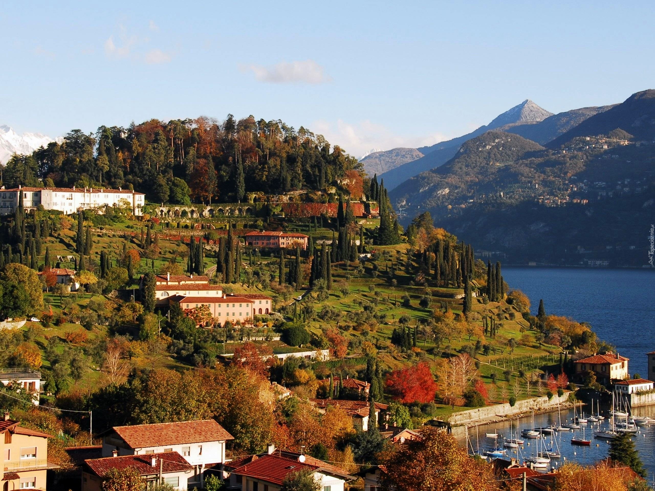 Edytor tapety: Lombardia, Góry, Jezioro, Como, Miasteczko, Jachty