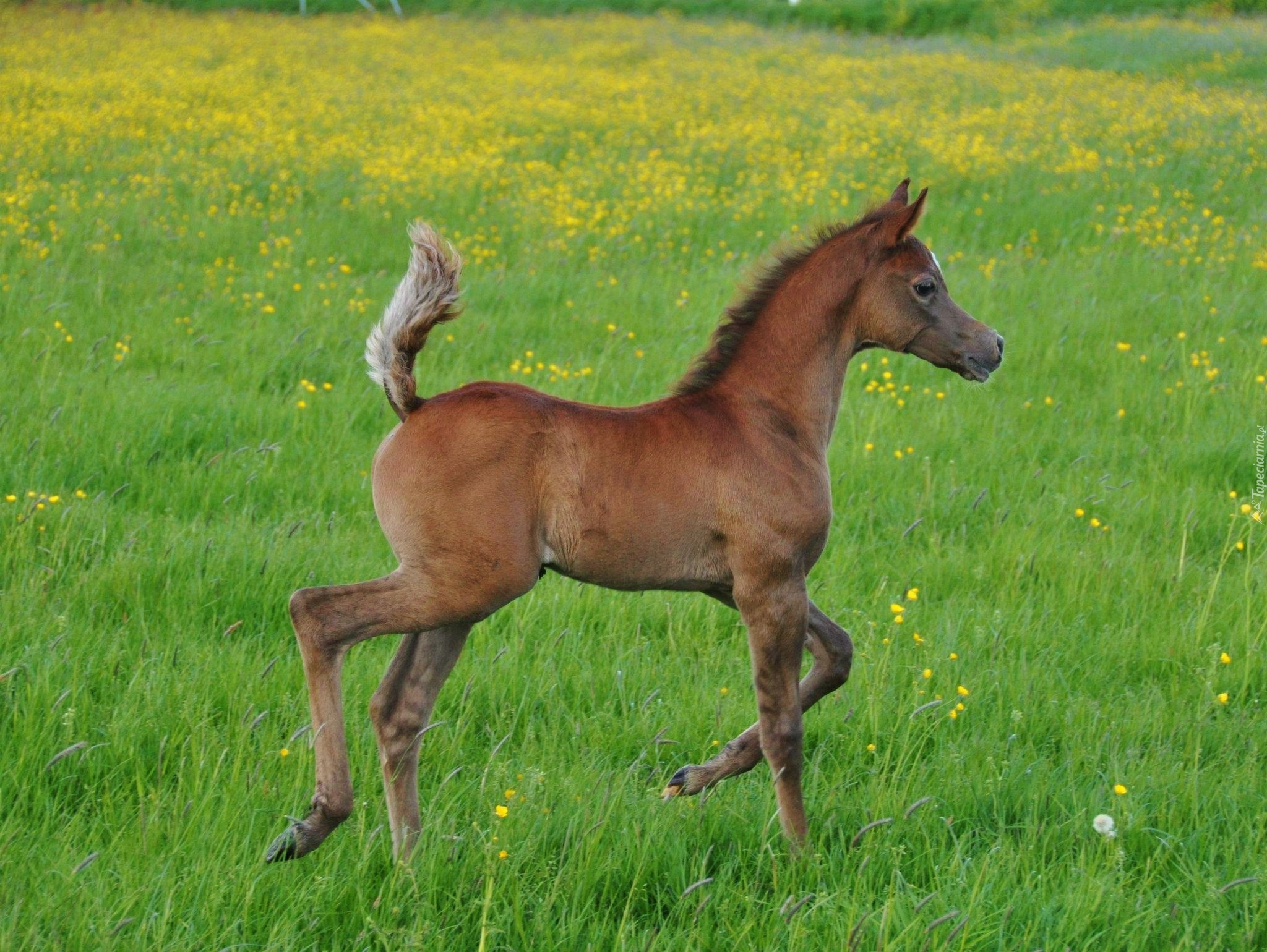 Edytor tapety: Źrebak, Łąka, Żółte, Kwiatki