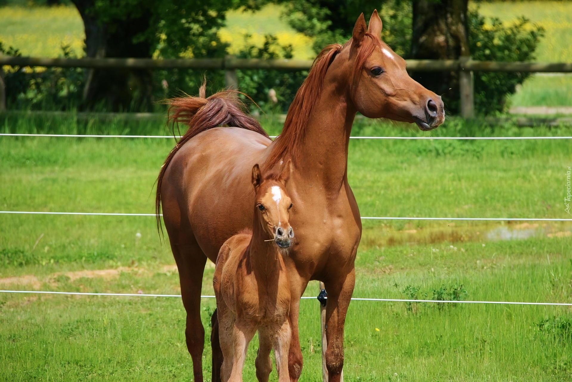Edytor tapety: Klacz, Źrebak, Ogrodzenie