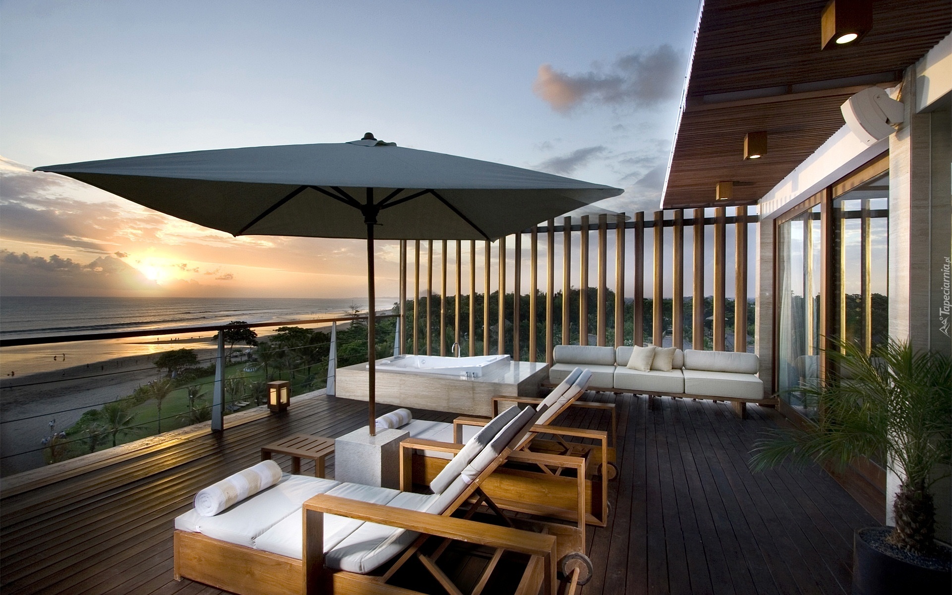 Edytor tapety: Zachód, Słońca, Morze, Plaża, Dom
