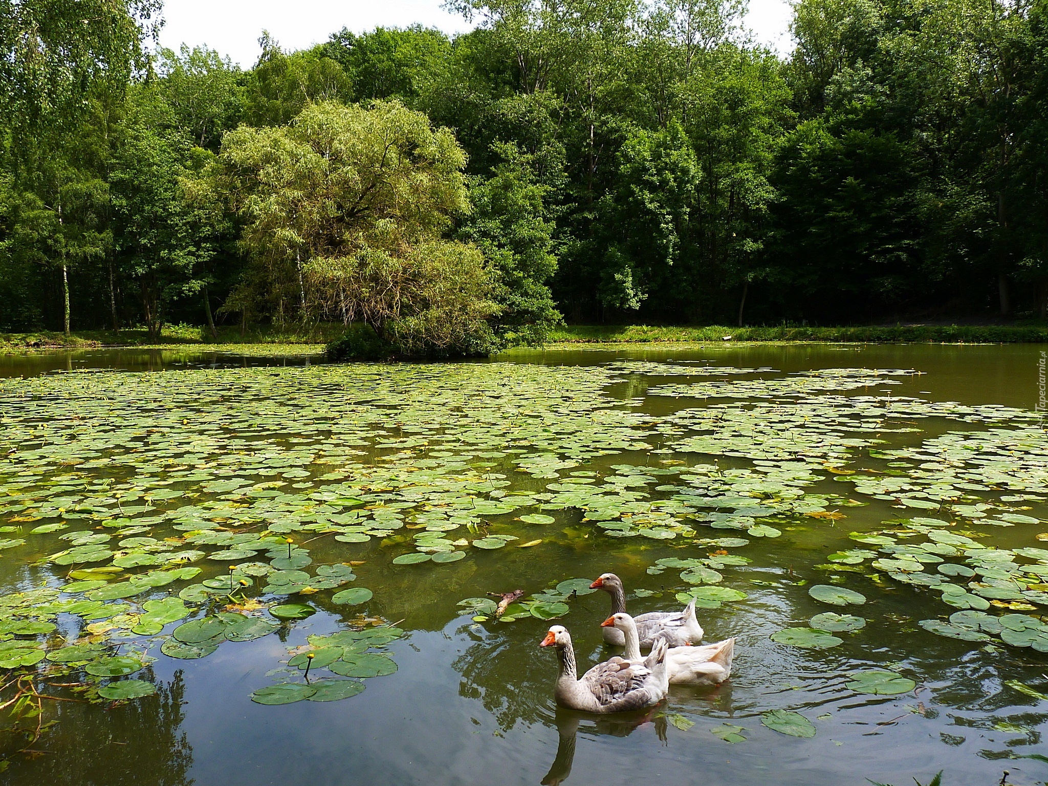 Edytor tapety: Park, Staw, Gęsi