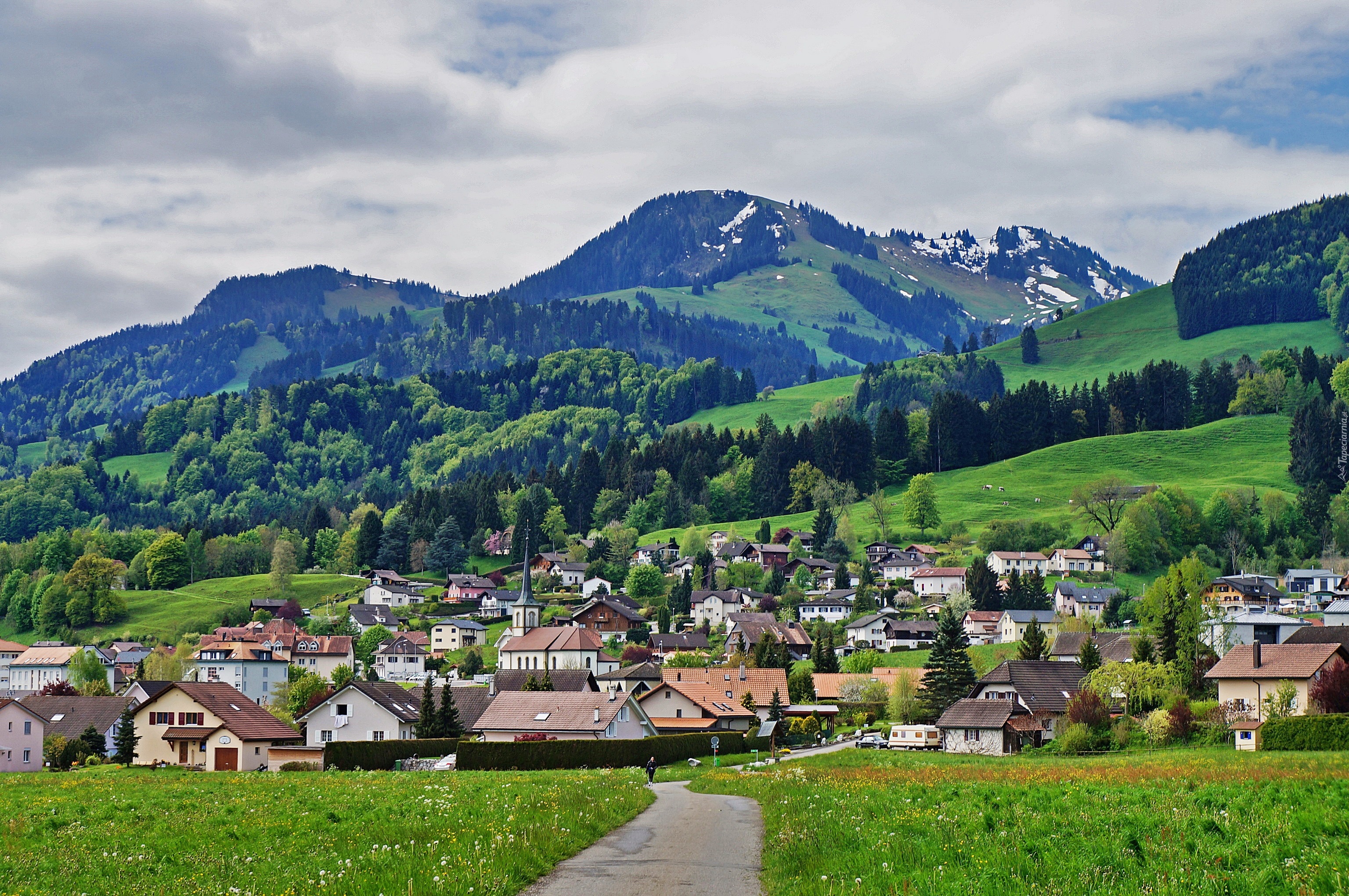 Edytor tapety: Góry, Droga, Miasteczko, Gruyere, Szwajcaria