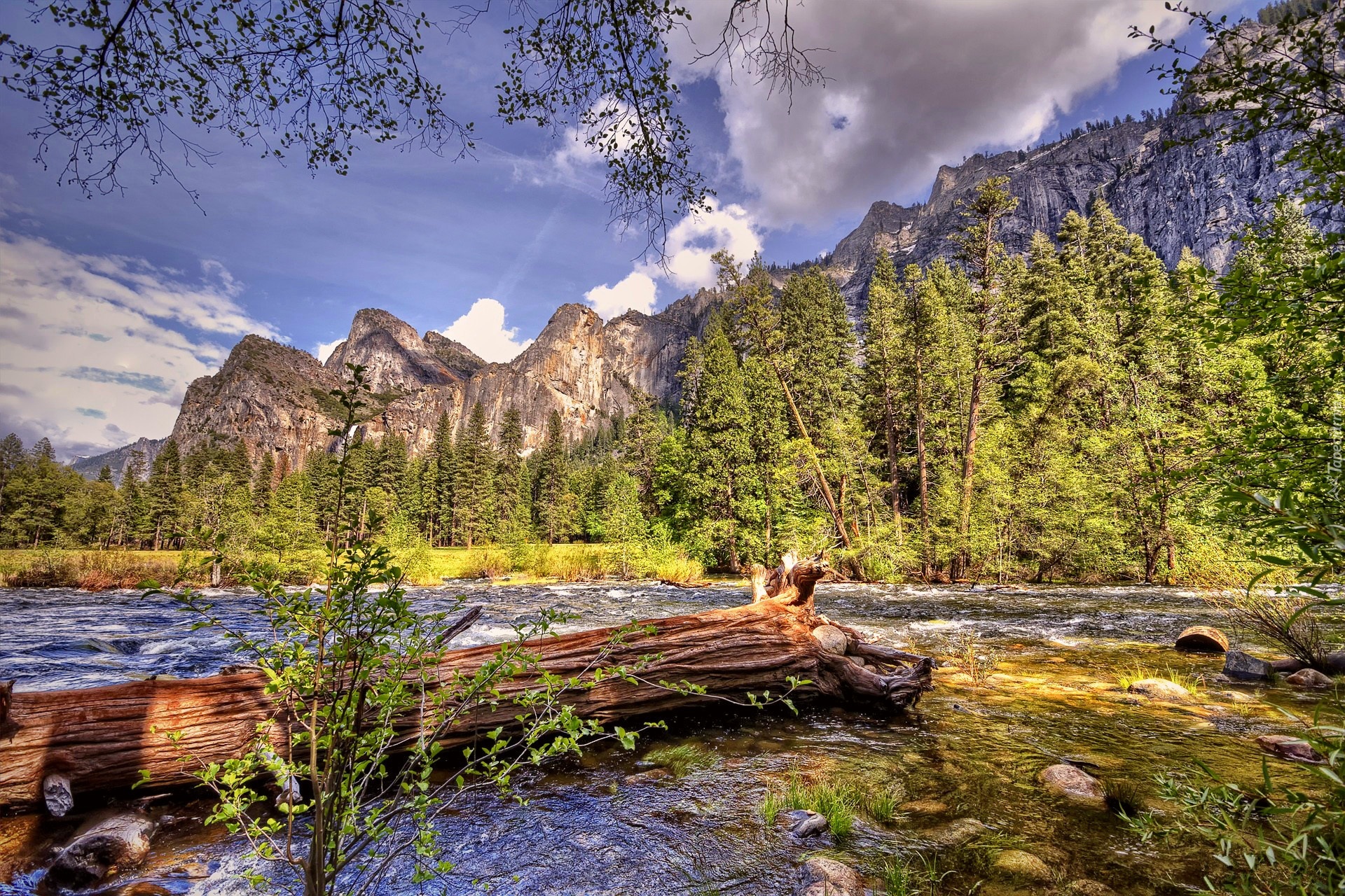 Edytor tapety: Góry, Las, Rzeka, Powalone, Drzewo