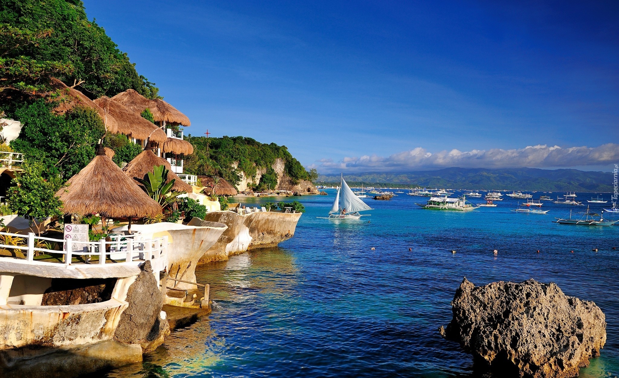 Edytor tapety: Morze, Wybrzeże, Góry, Łodzie