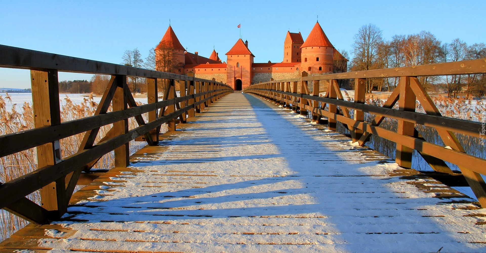 Edytor tapety: Zamek w Trokach, Troki, Litwa, Jezioro Galwe, Drewniany, Most