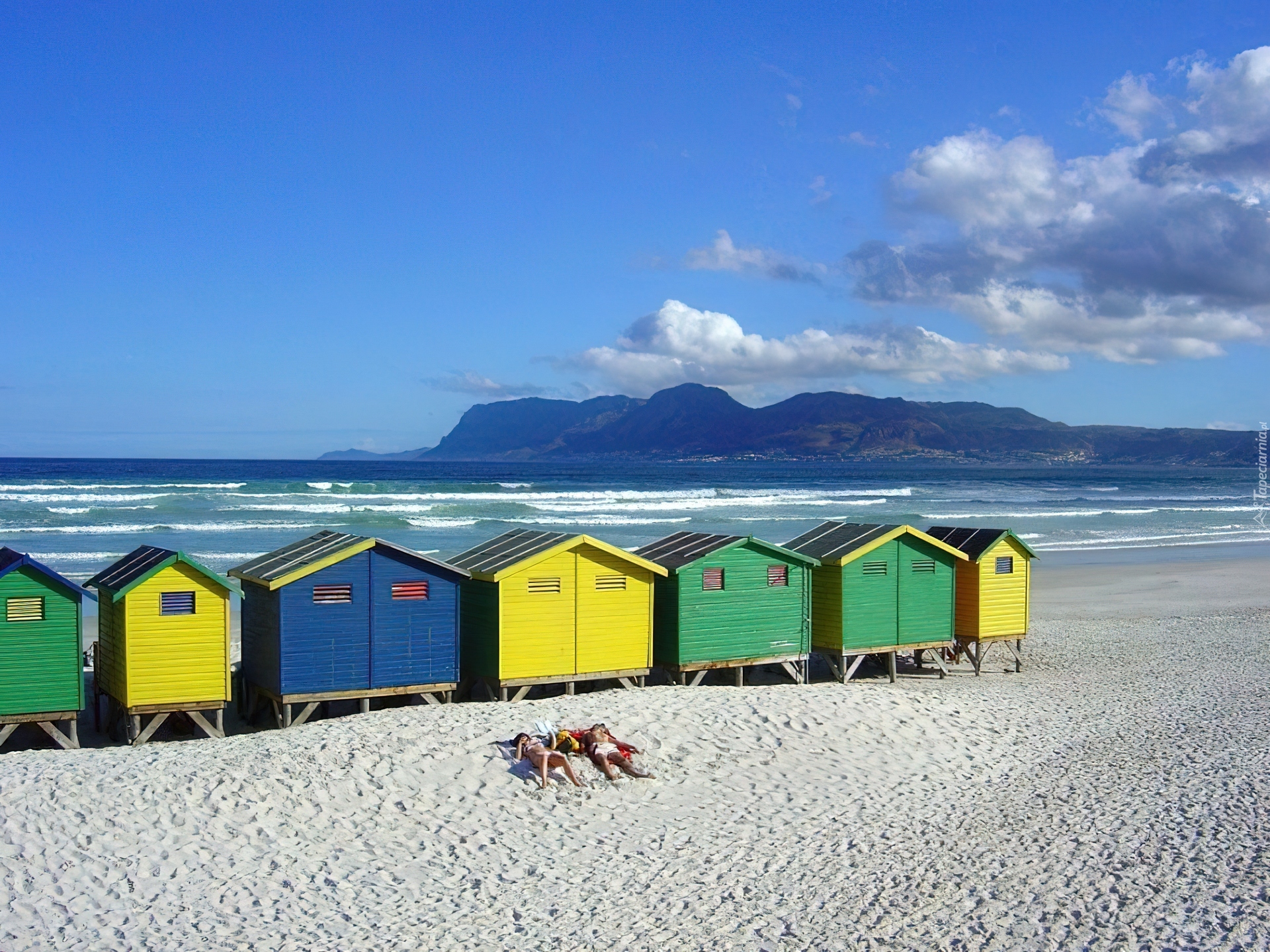 Edytor tapety: Góry, Plaża, Fale, Morze, domki na plaży