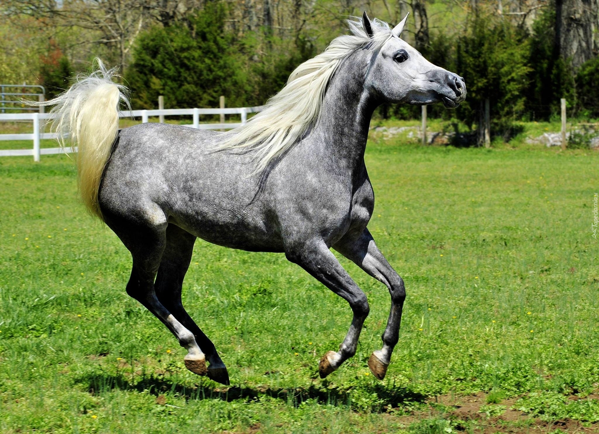Edytor tapety: Koń, Bieg, Biała, Grzywa, Ogon, Trawa