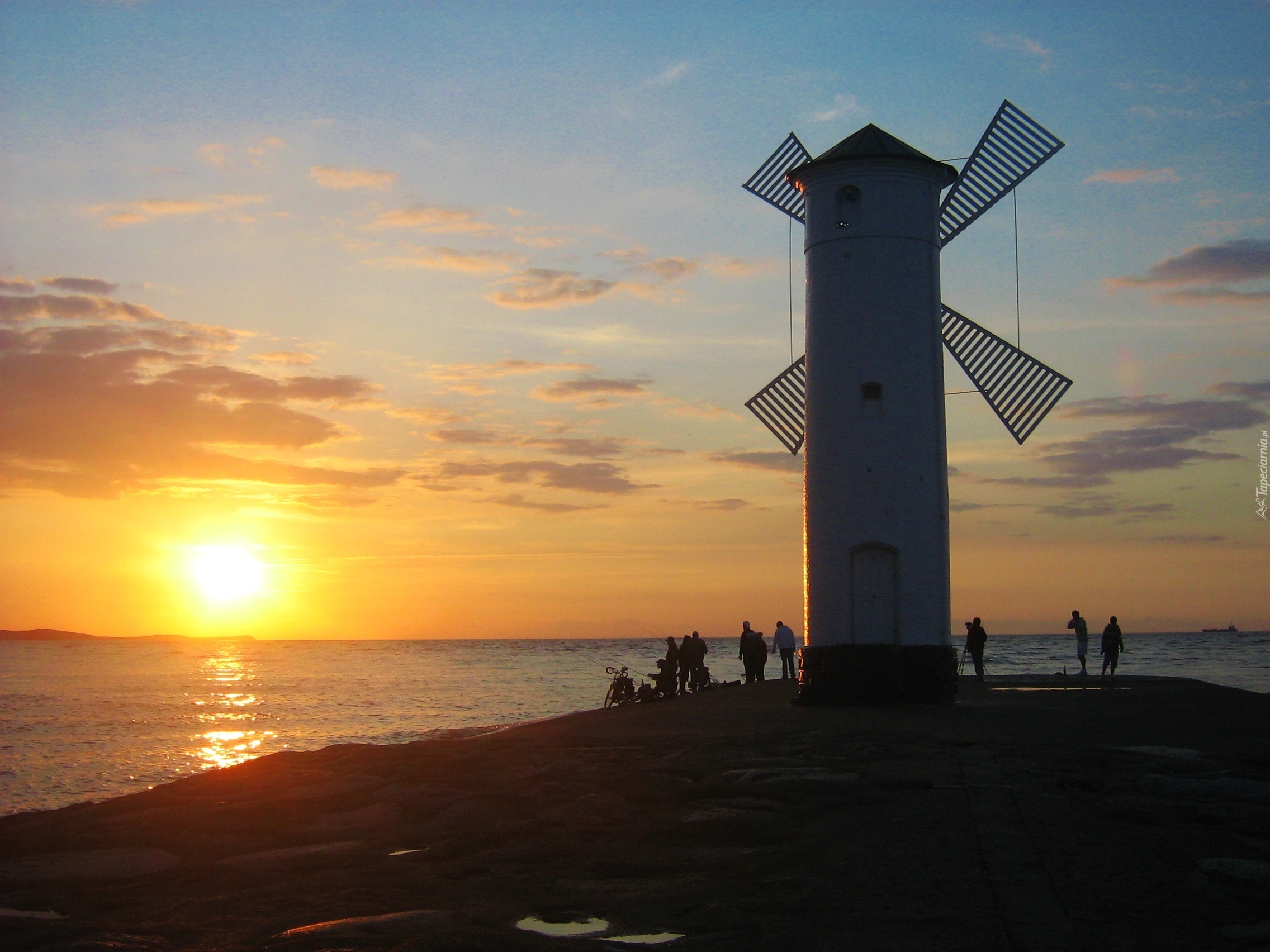Edytor tapety: Zachód, Słońca, Wiatrak, Ludzie