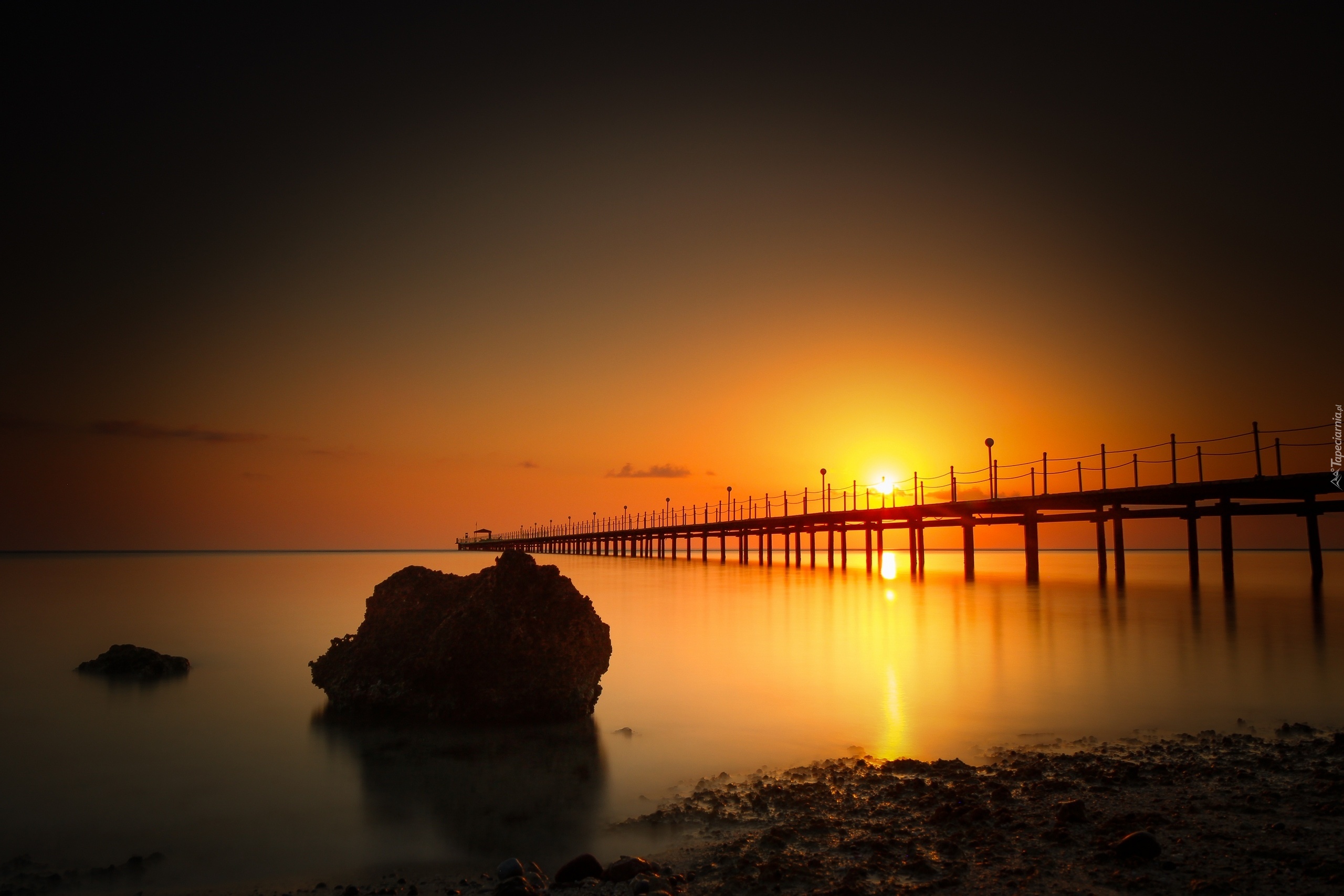 Edytor tapety: Morze, Zachód, Słońca, Molo