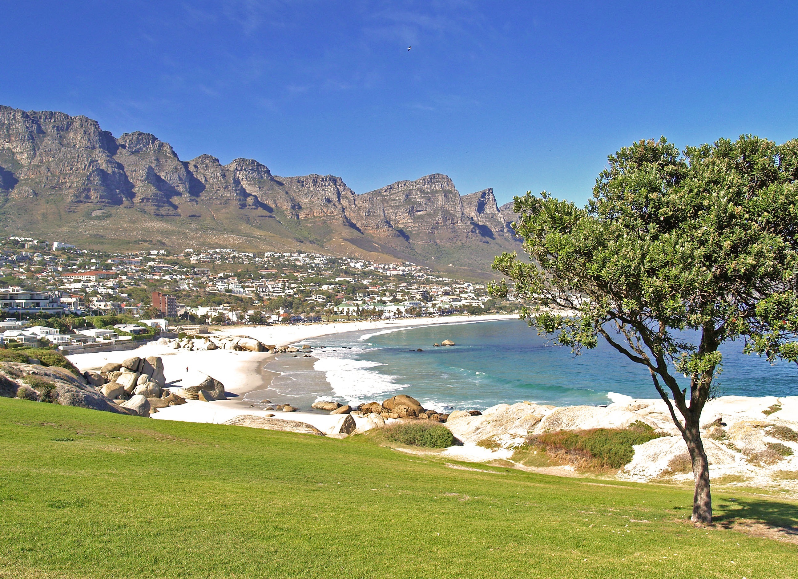 Edytor tapety: Góry, Drzewo, Plaża, Fale
