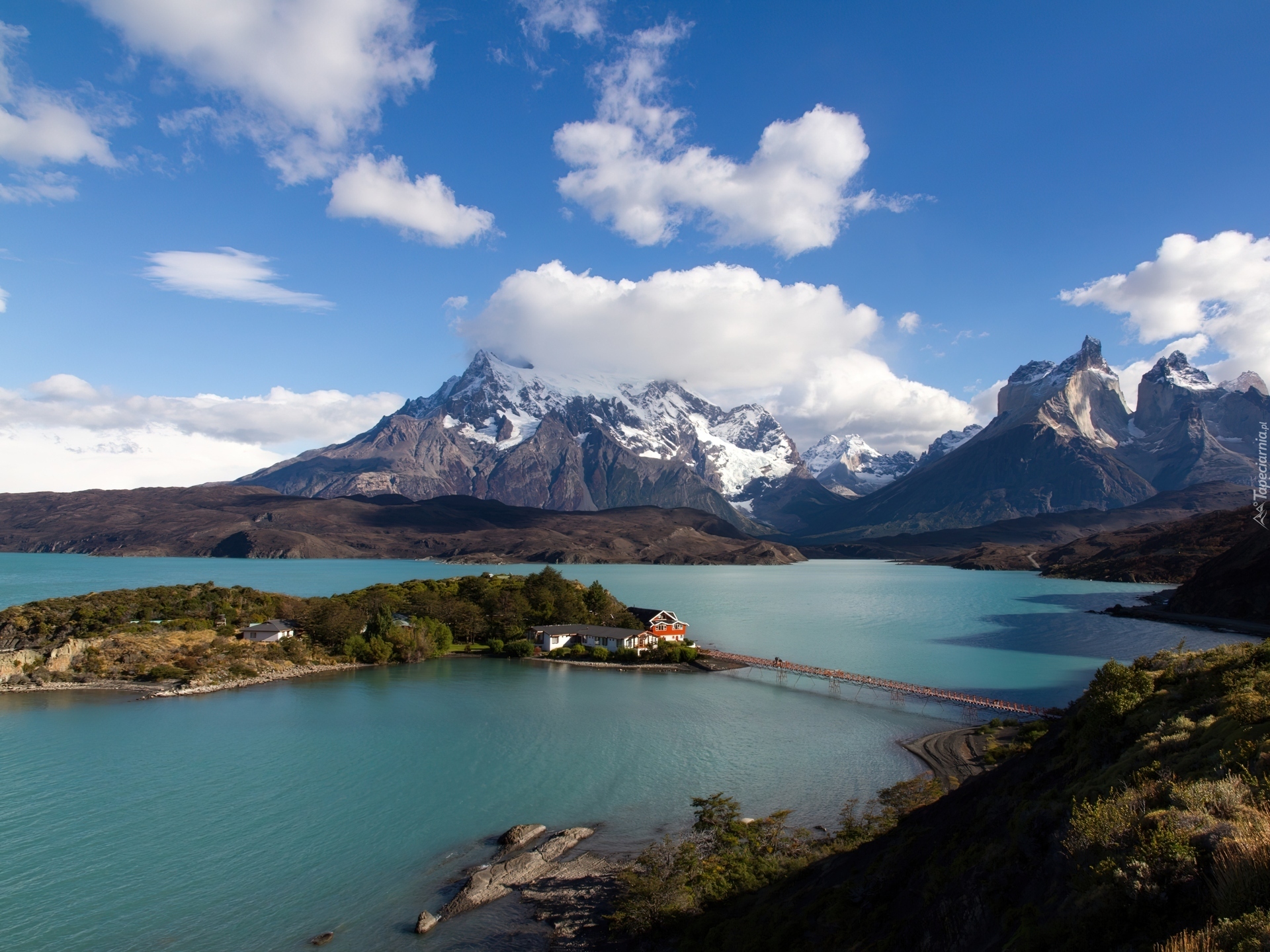 Edytor tapety: Góry, Morze, Mostek, Dom