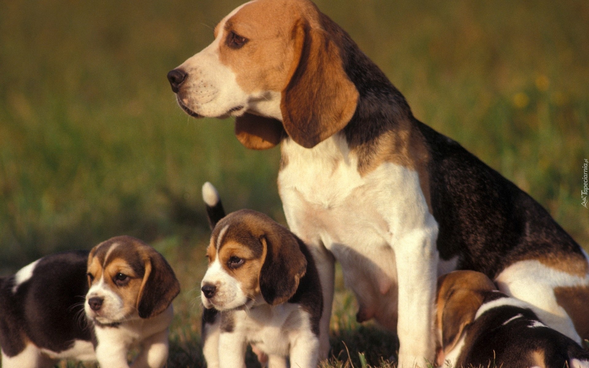Edytor tapety: Beagle, Mama, Szczeniaki