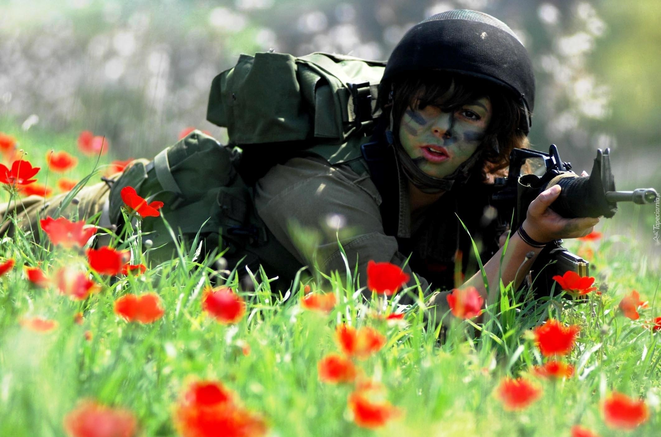 Edytor tapety: Kobieta, Żołnierz, Maki