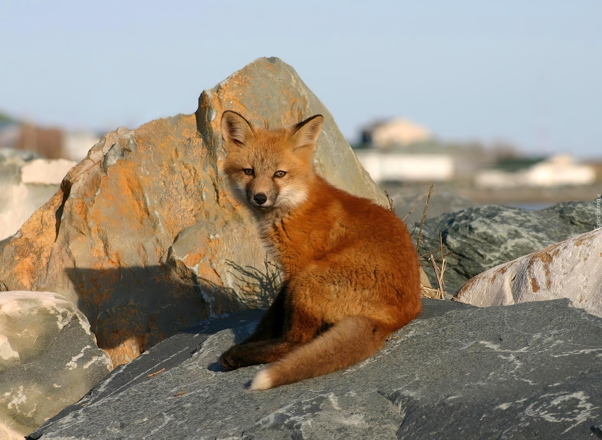 Edytor tapety: Rudy, Lisek, Skała
