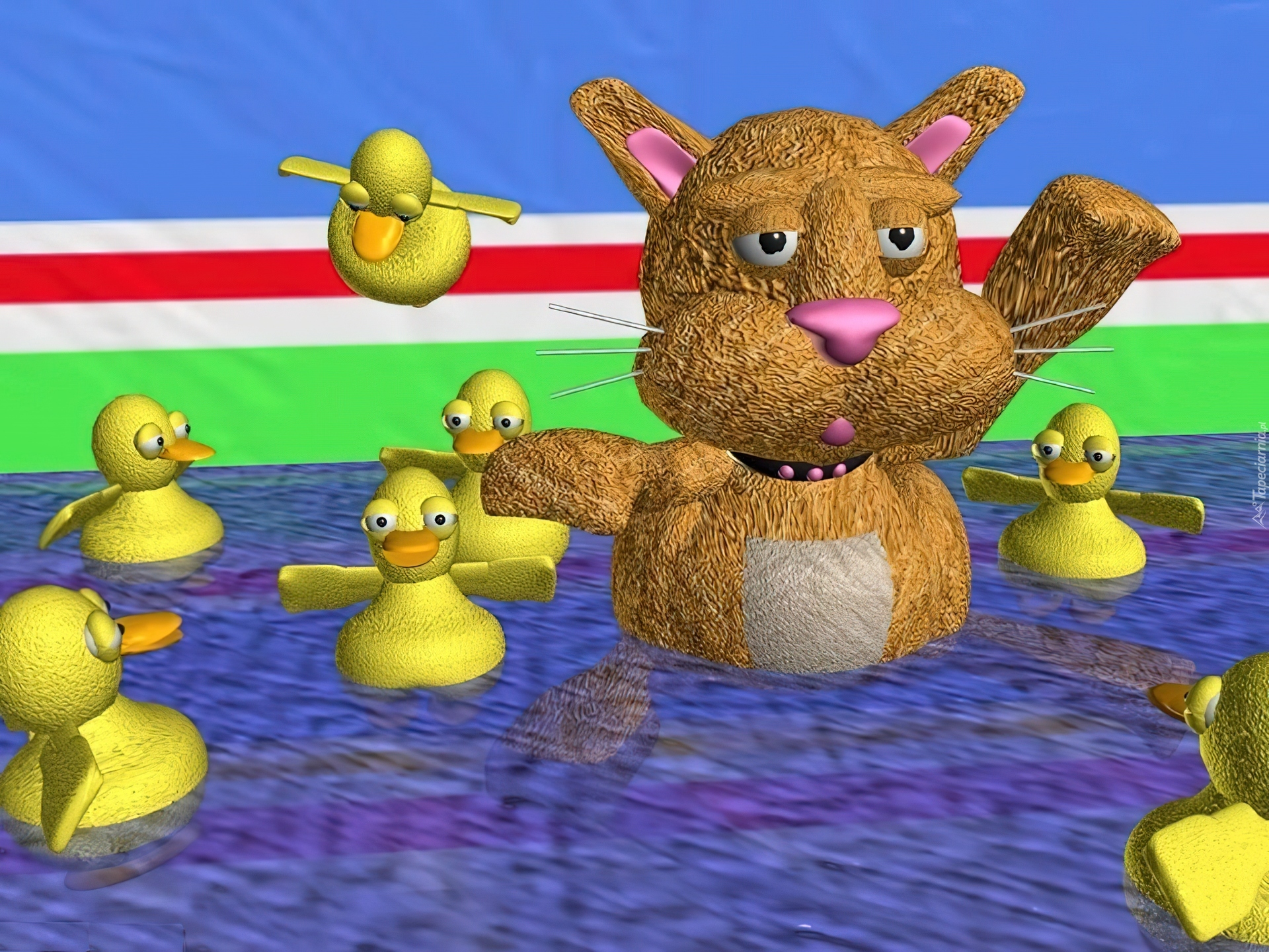 Edytor tapety: Wielkanoc,zajączek ,kurczaczki ,woda