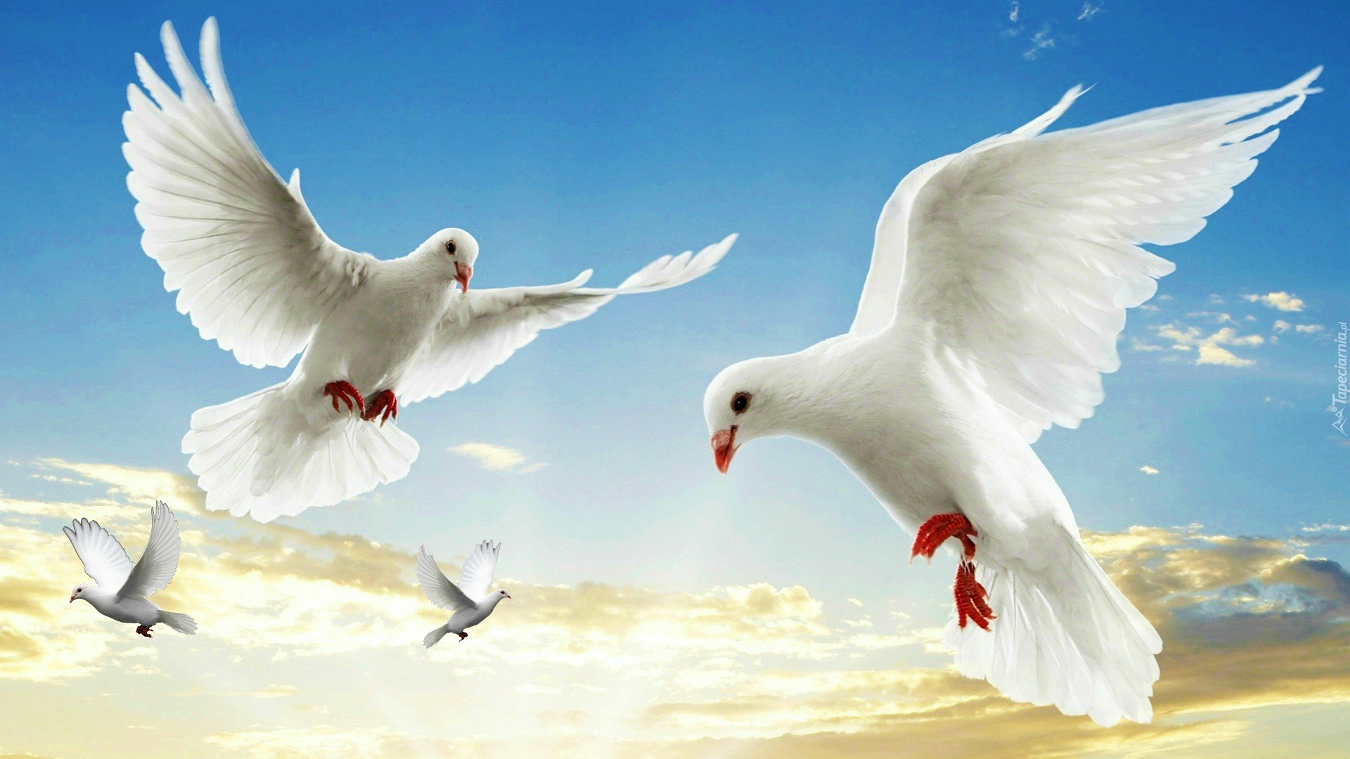 Edytor tapety: Białe, Gołębie, Niebo