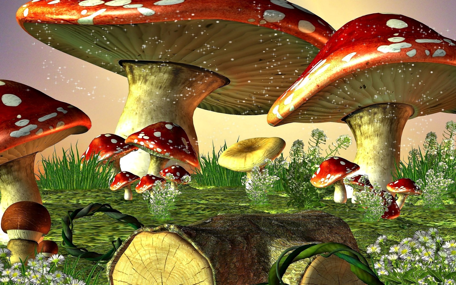 Edytor tapety: Grzyby, Muchomory, Zielony, Mech