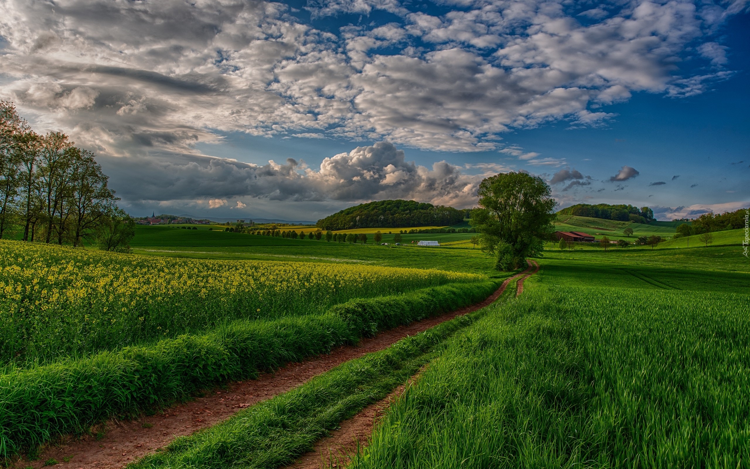 Edytor tapety: Chmury, Droga, Zielone, Pola