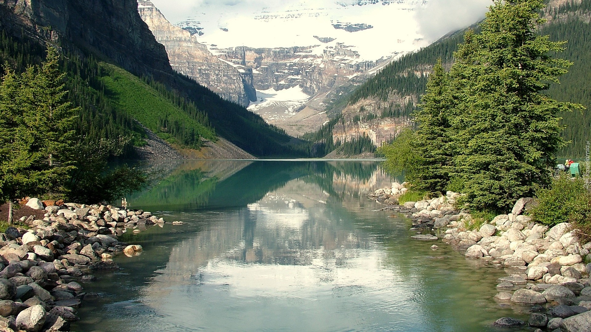 Edytor tapety: Jezioro, Kamienie, Góry, Lasy, Louise, Kanada