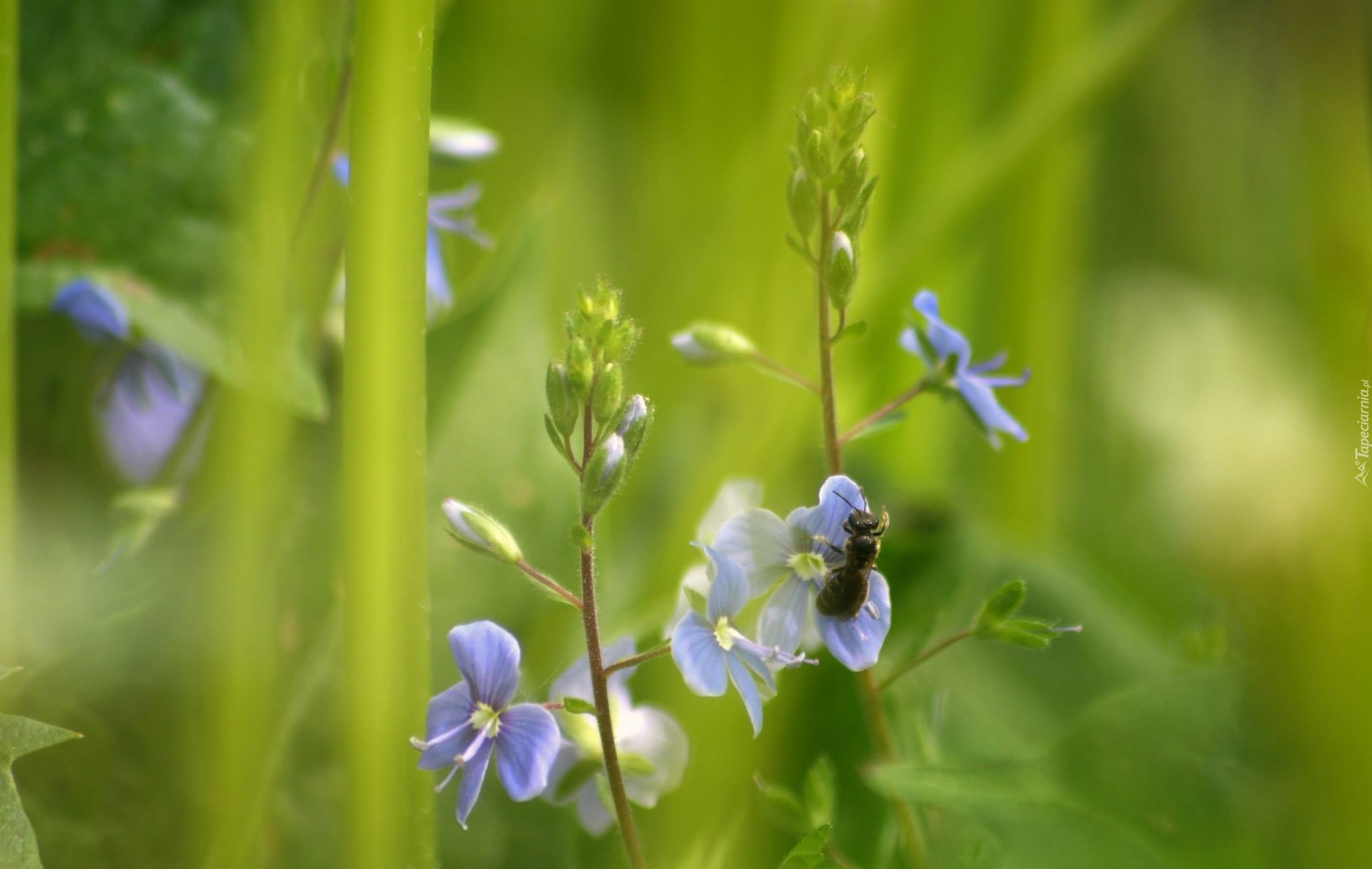 Edytor tapety: Niebieskie, Kwiaty, Owad