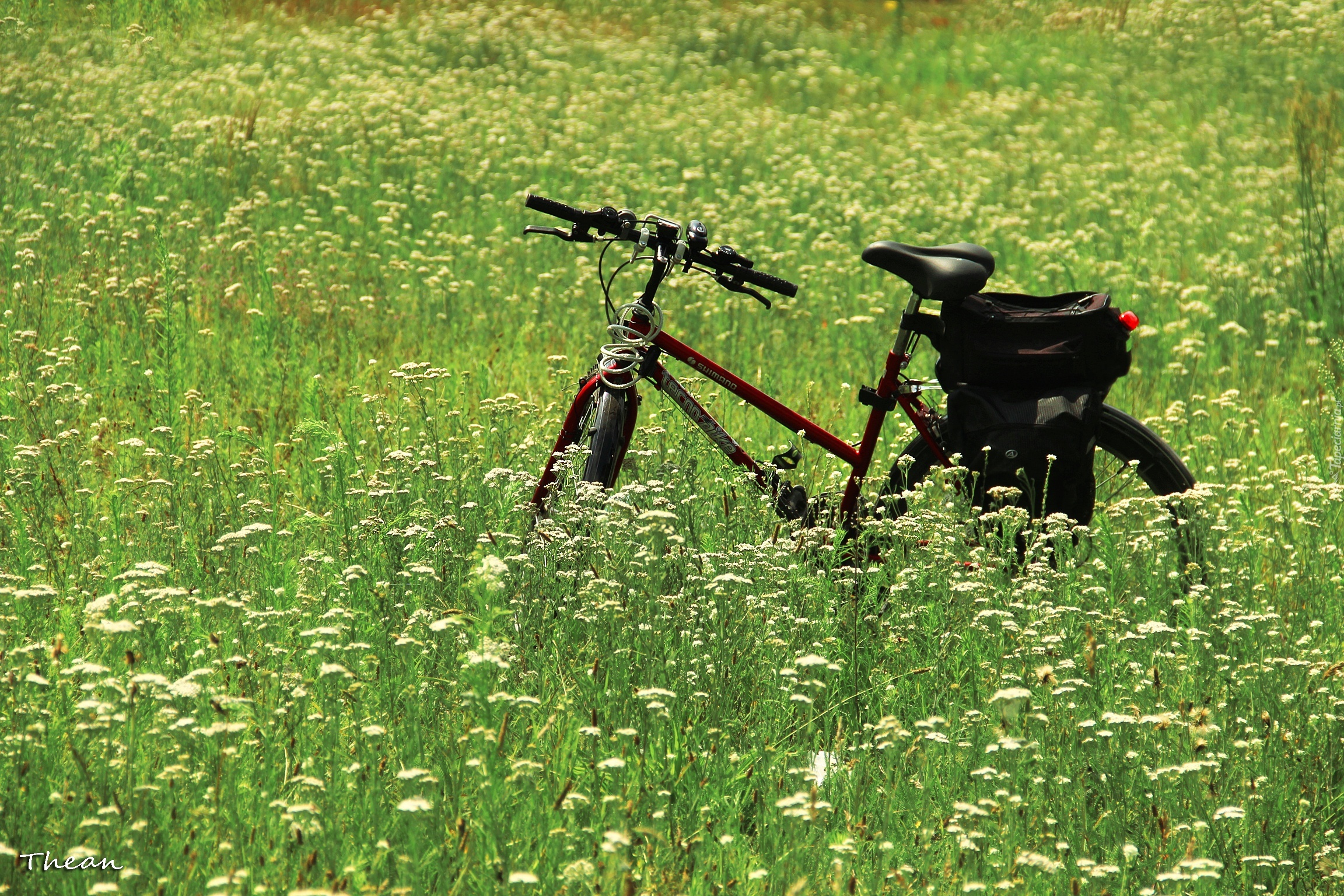 Edytor tapety: Rower, Łąka, Kwiaty