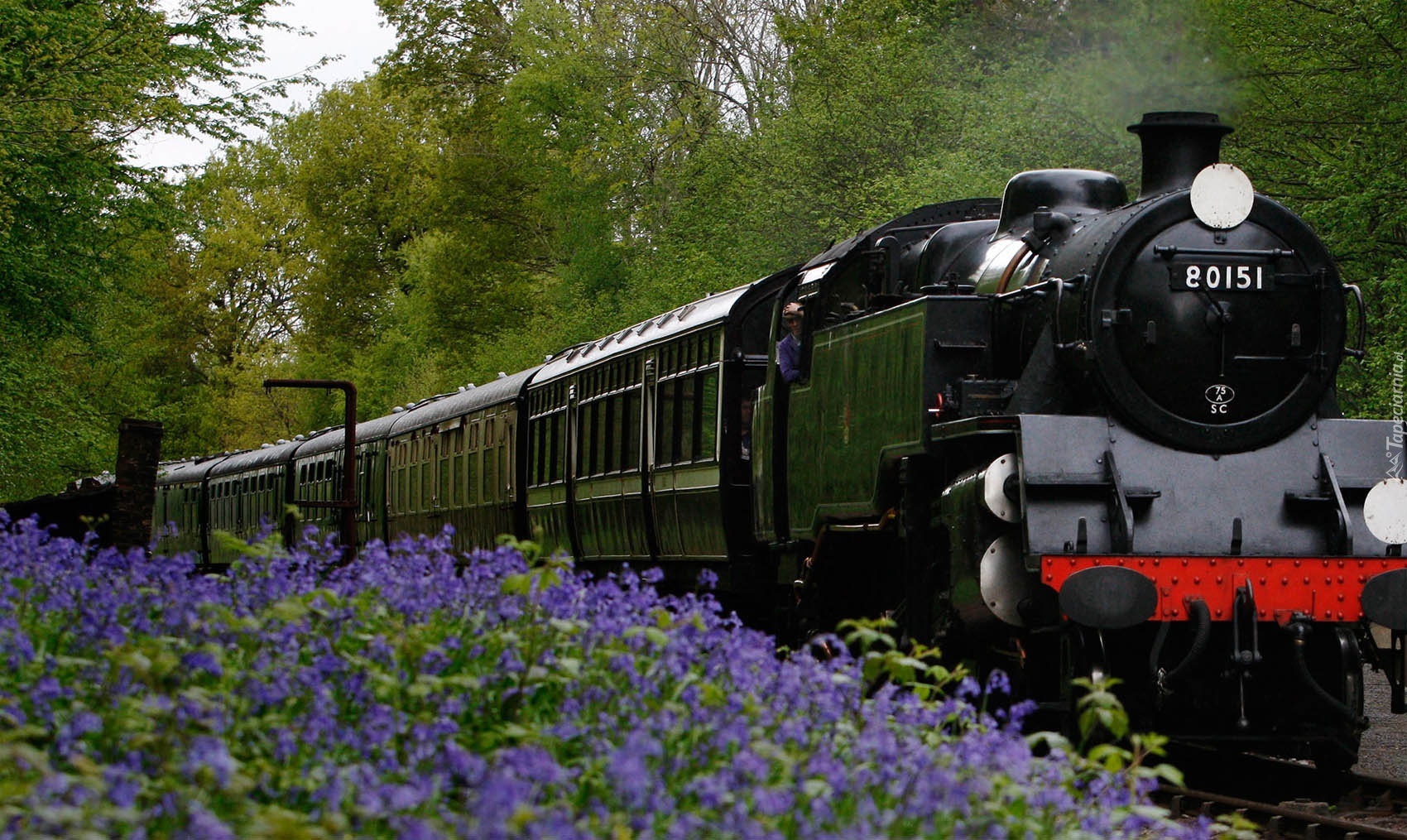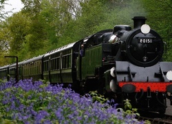 Edytor tapety: Pociąg, Lokomotywa, Drzewa, Kwiaty