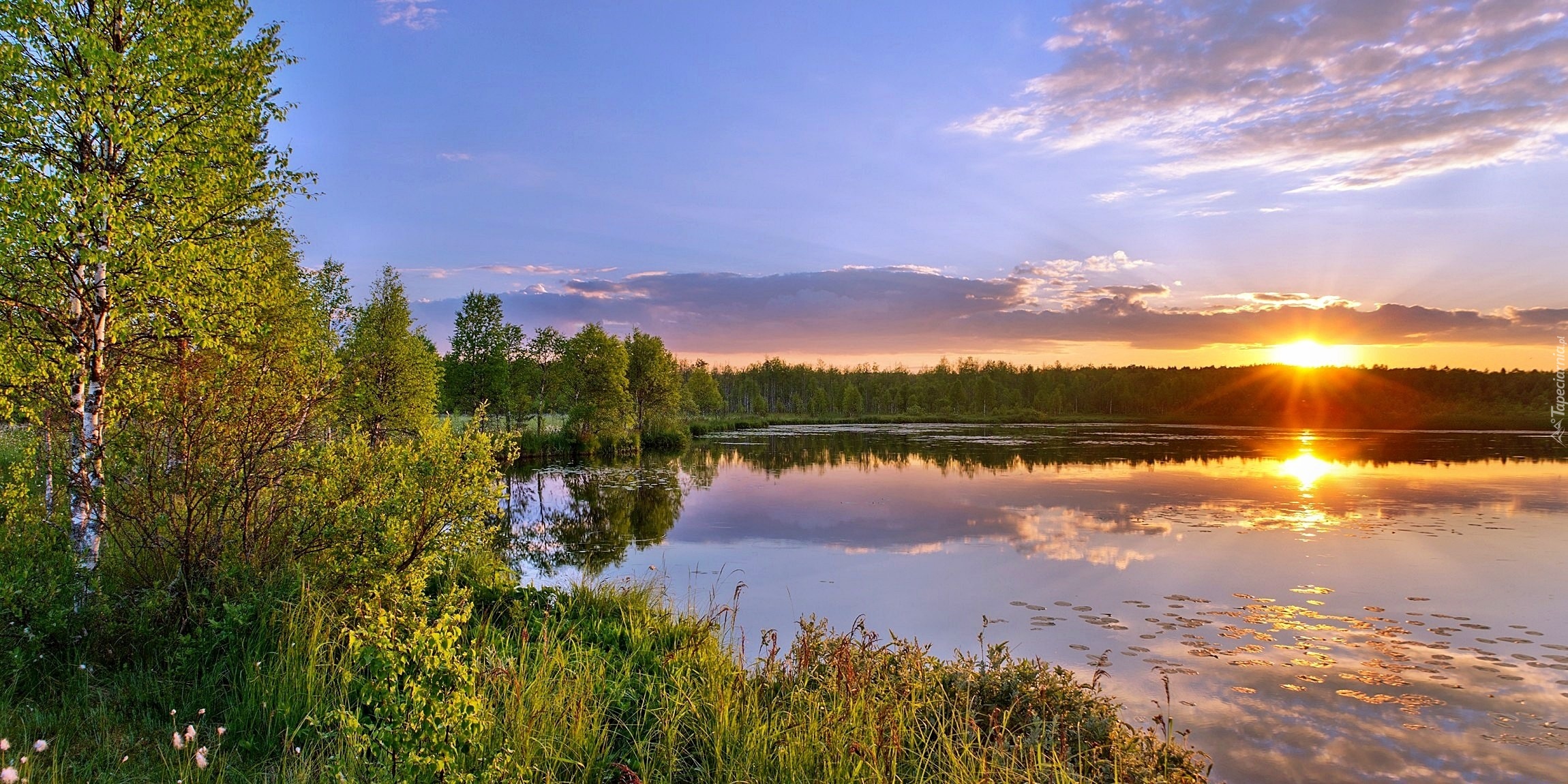 Edytor tapety: Jezioro, Lasy, Zachód, Słońca