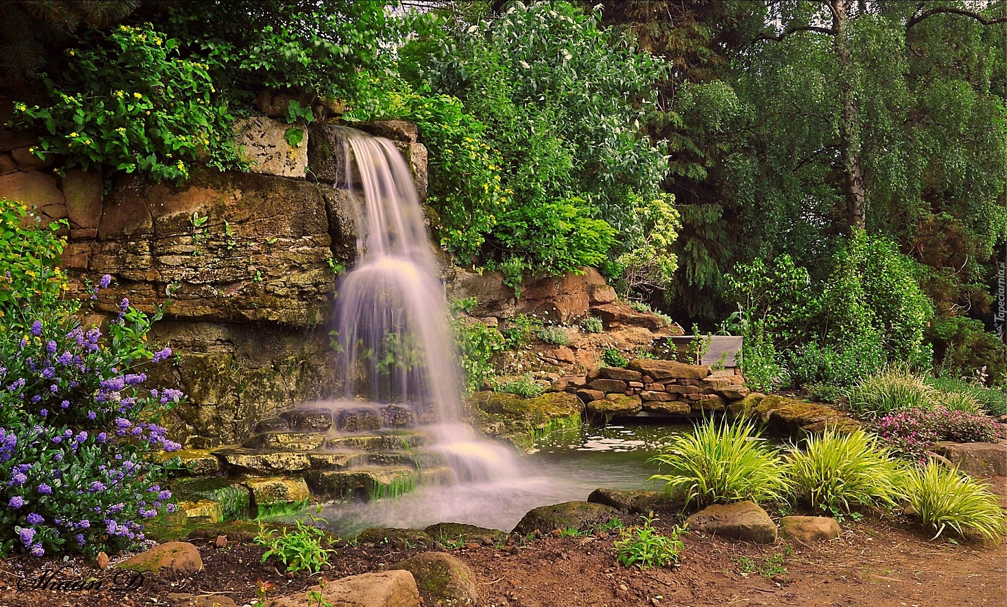 Edytor tapety: Park, Wodospad, Skały, Roślinność