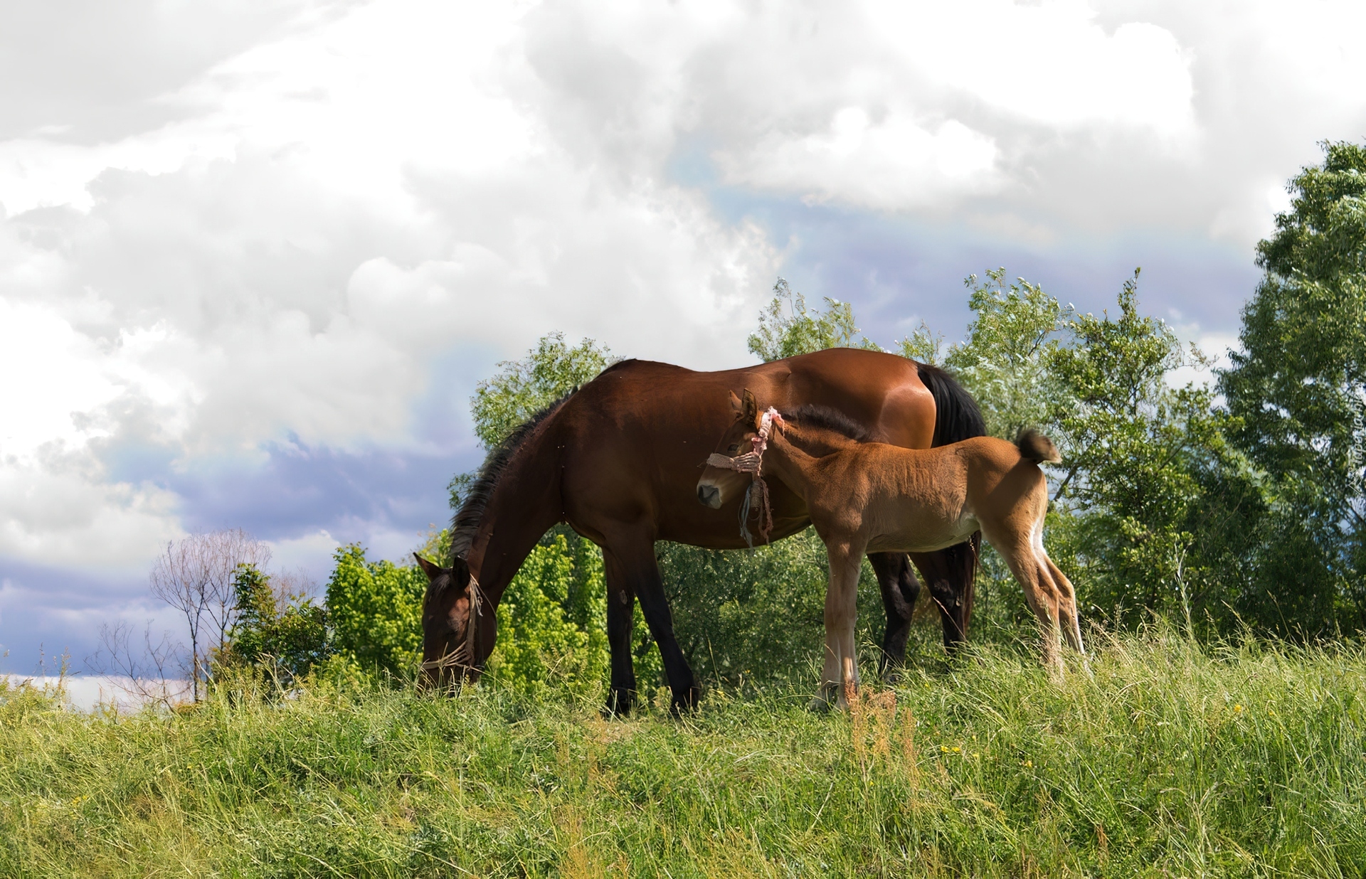 Edytor tapety: Konie, Łąka, Chmury