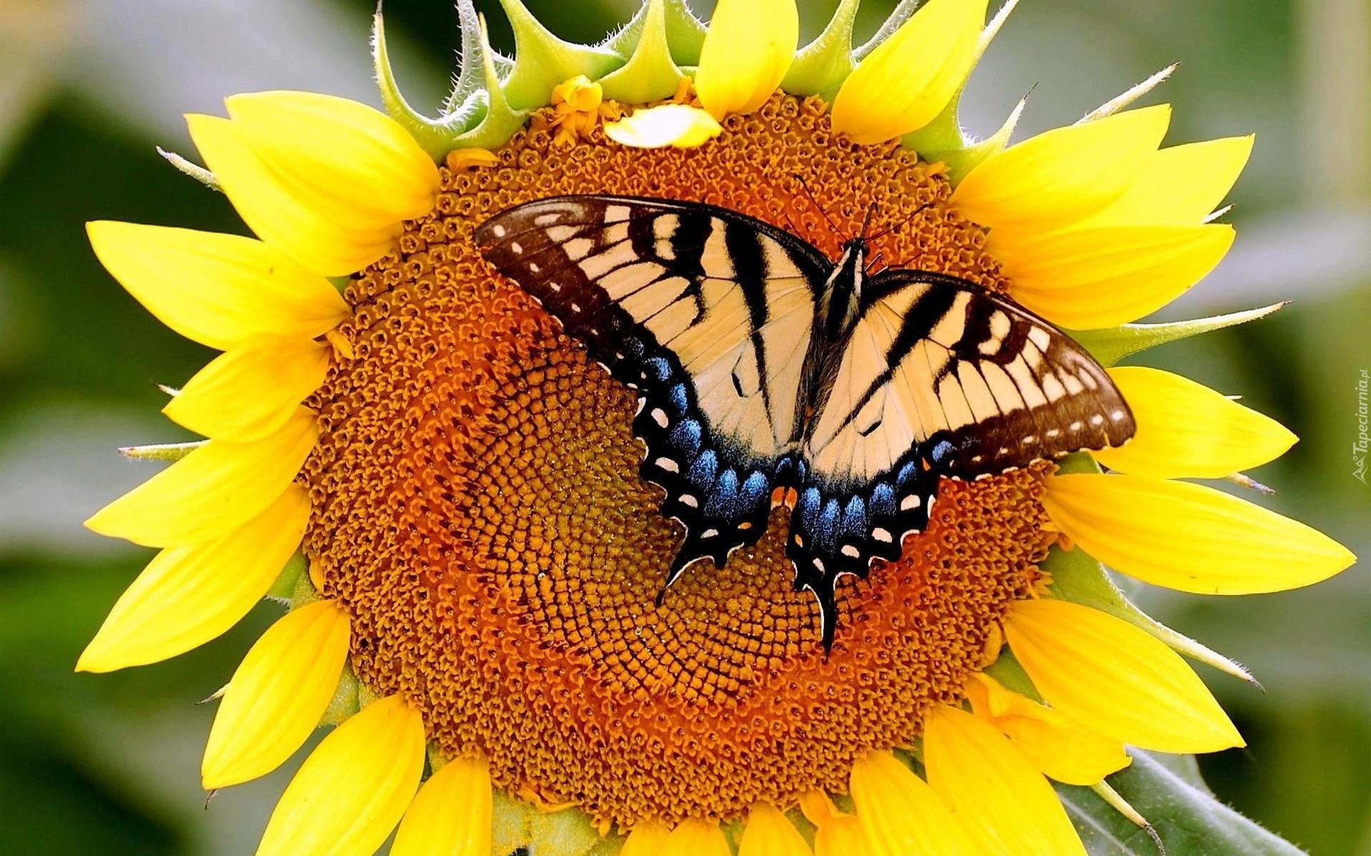 Edytor tapety: Słonecznik, Motyl, Paź królowej