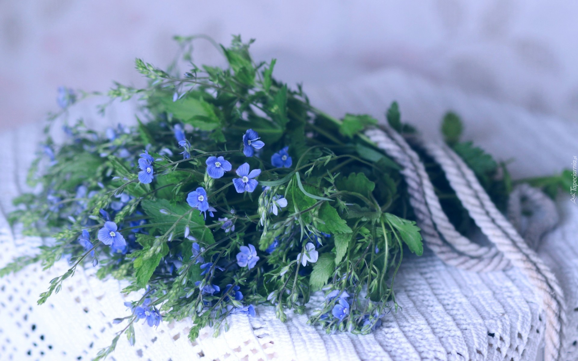 Edytor tapety: Niebieskie, Kwiatuszki, Bukiet