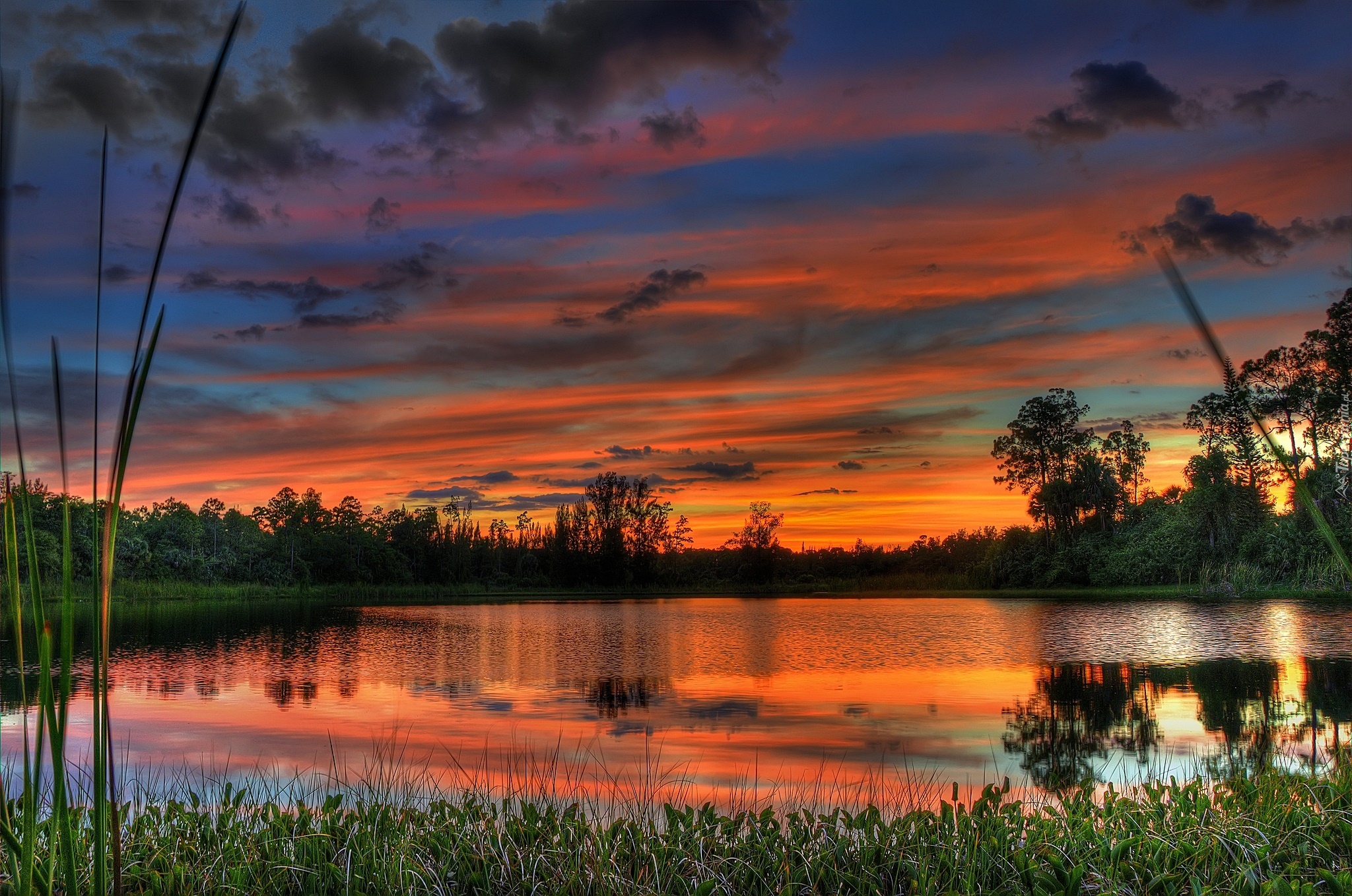 Edytor tapety: Zachód, Słońca, Jezioro, Drzewa