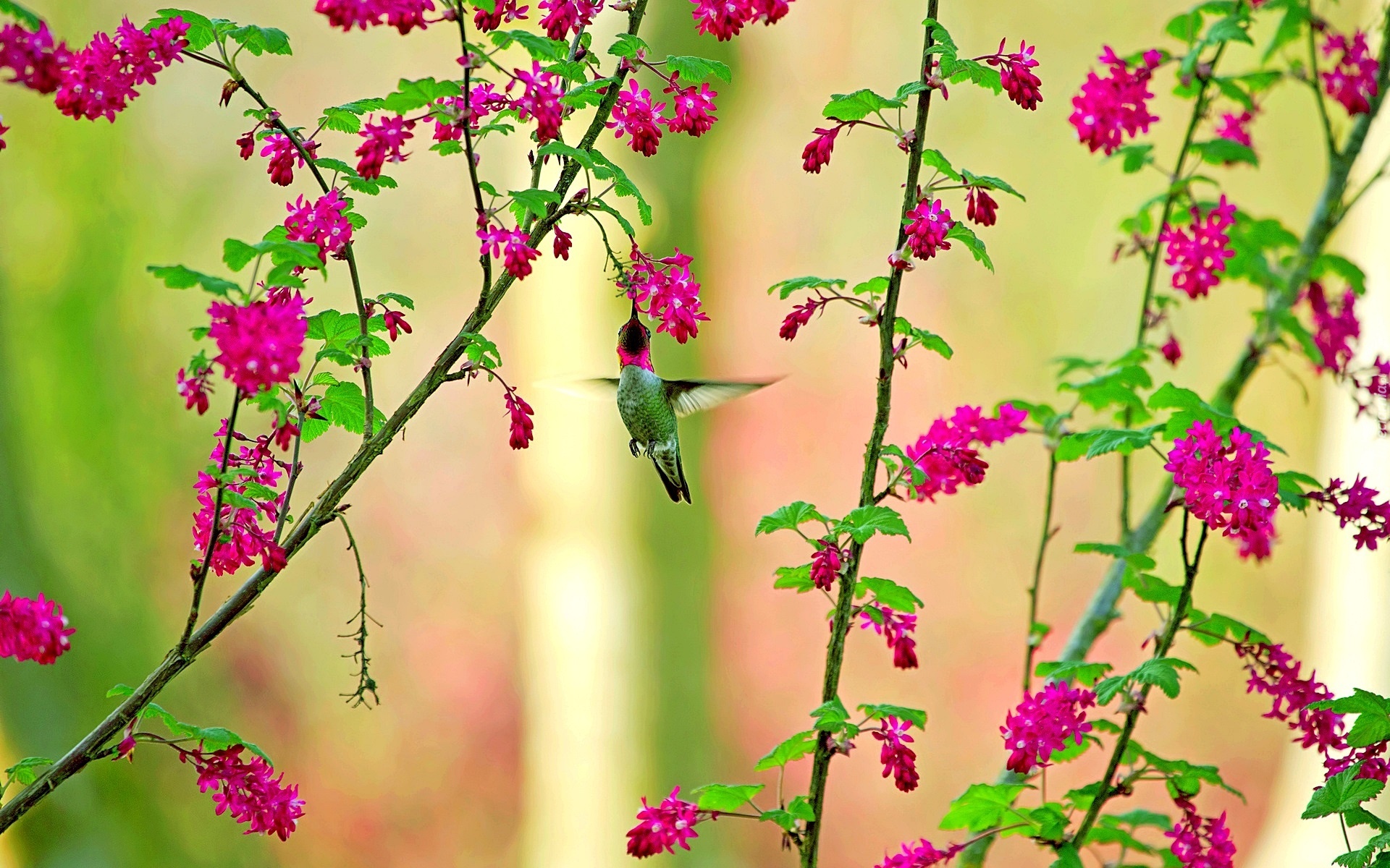 Edytor tapety: Koliber, Gałązki, Kwiaty