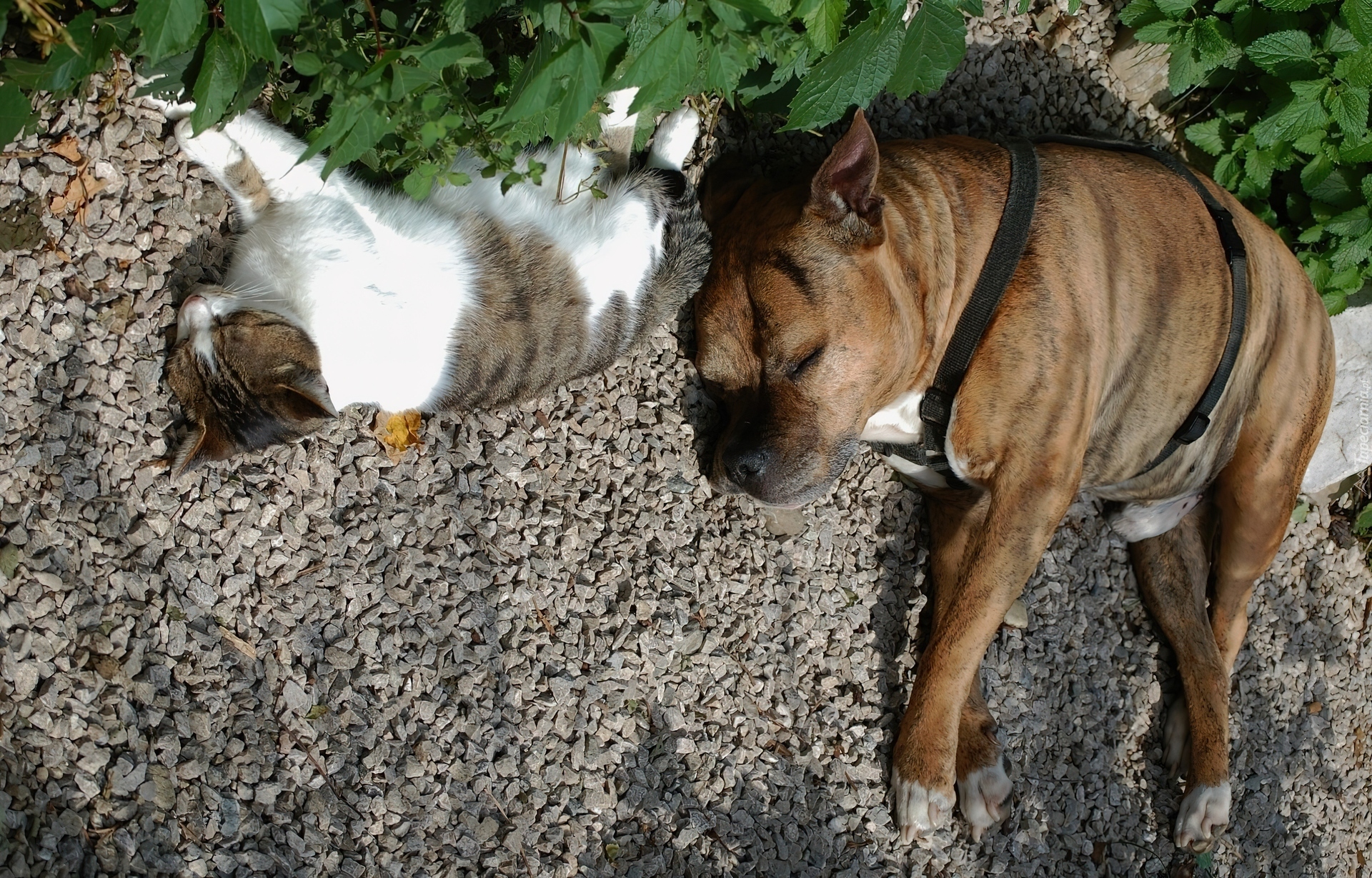 Edytor tapety: Śpiące, Kotek, Piesek, Kamyczki