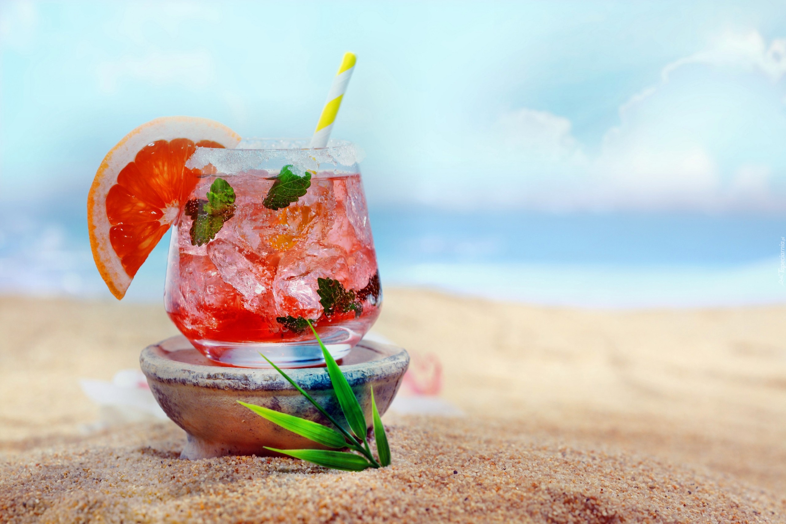 Edytor tapety: Kolorowy, Orzezwiający, Drink, Piasek, Niebo
