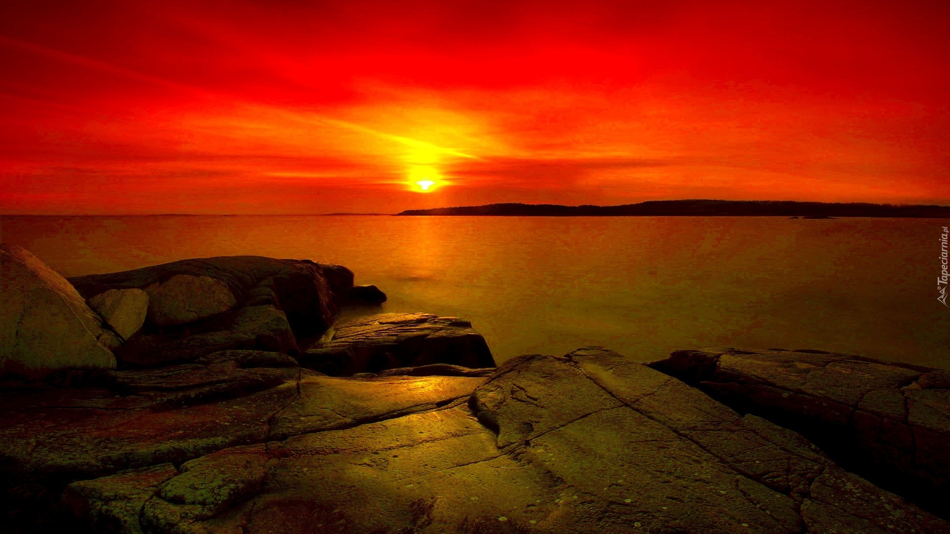 Edytor tapety: Morze, Skały, Zachód Słońca