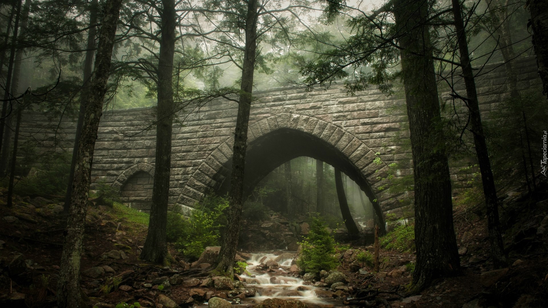 Edytor tapety: Las, Rzeczka, Most, Mgła